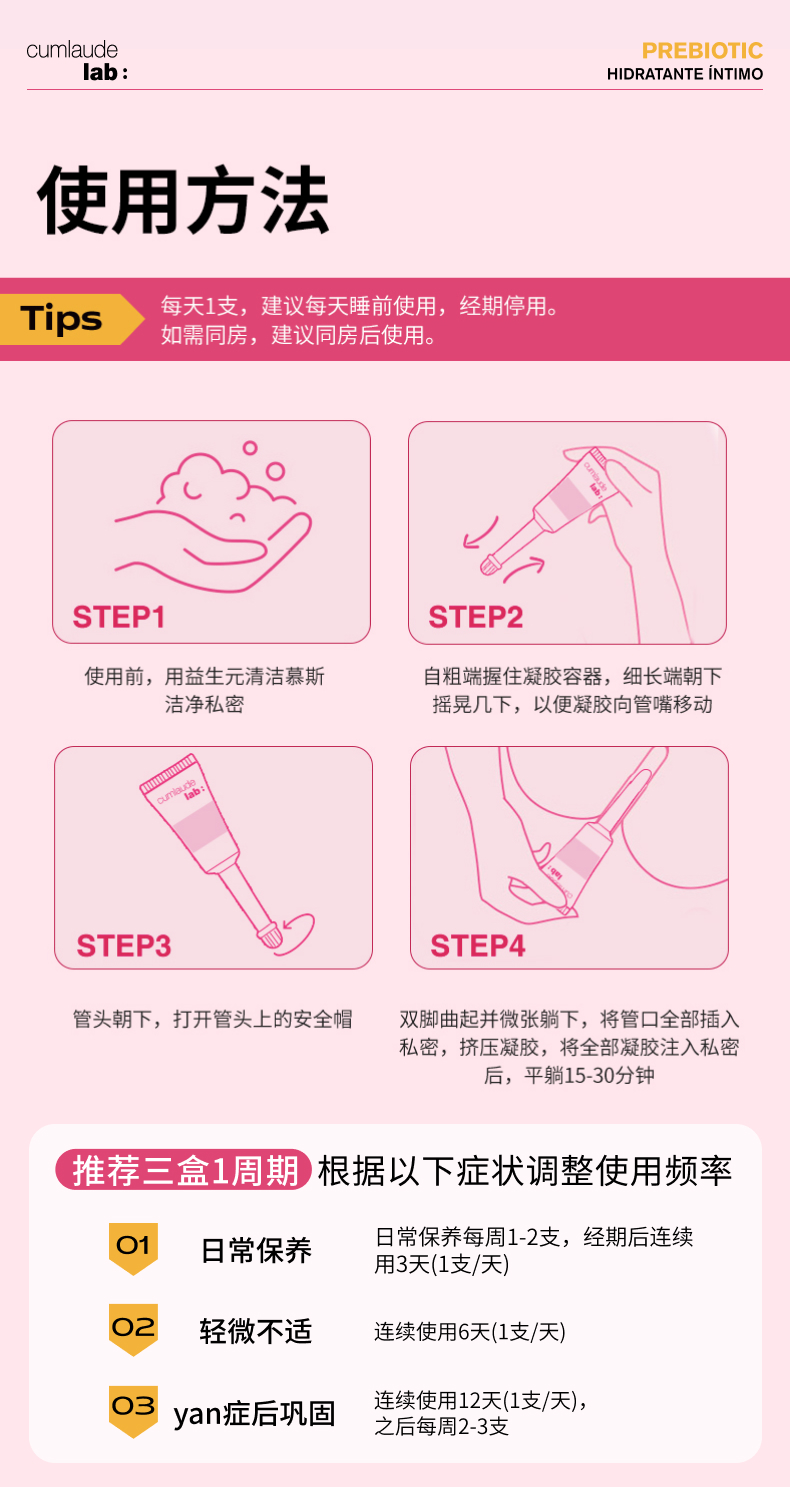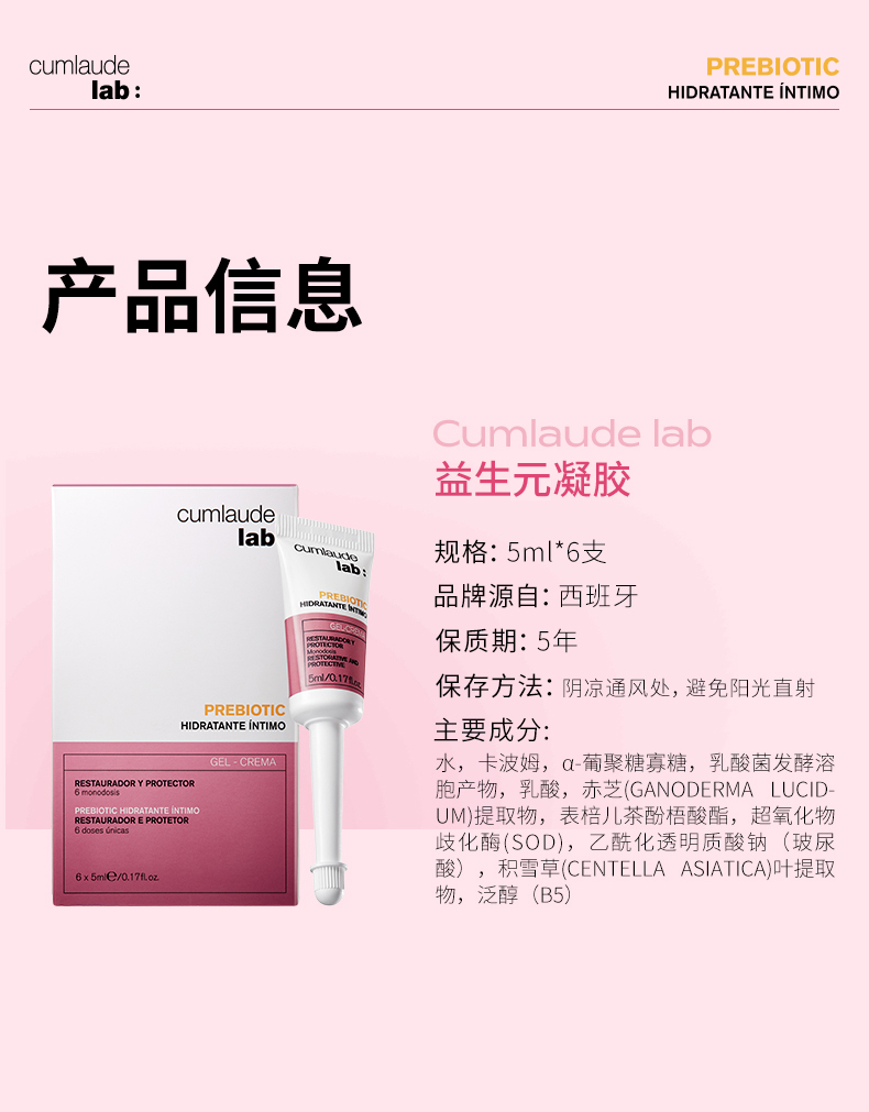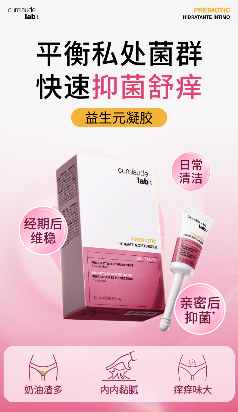 珂蔓朵 益生元凝胶 6x5ml+益生元女性护理慕斯150ml+内衣洗液50ml*5袋
