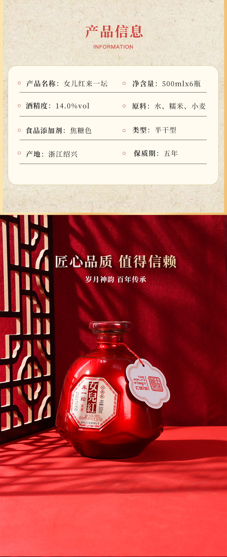 女儿红来一坛 (经典版)500ml*6瓶