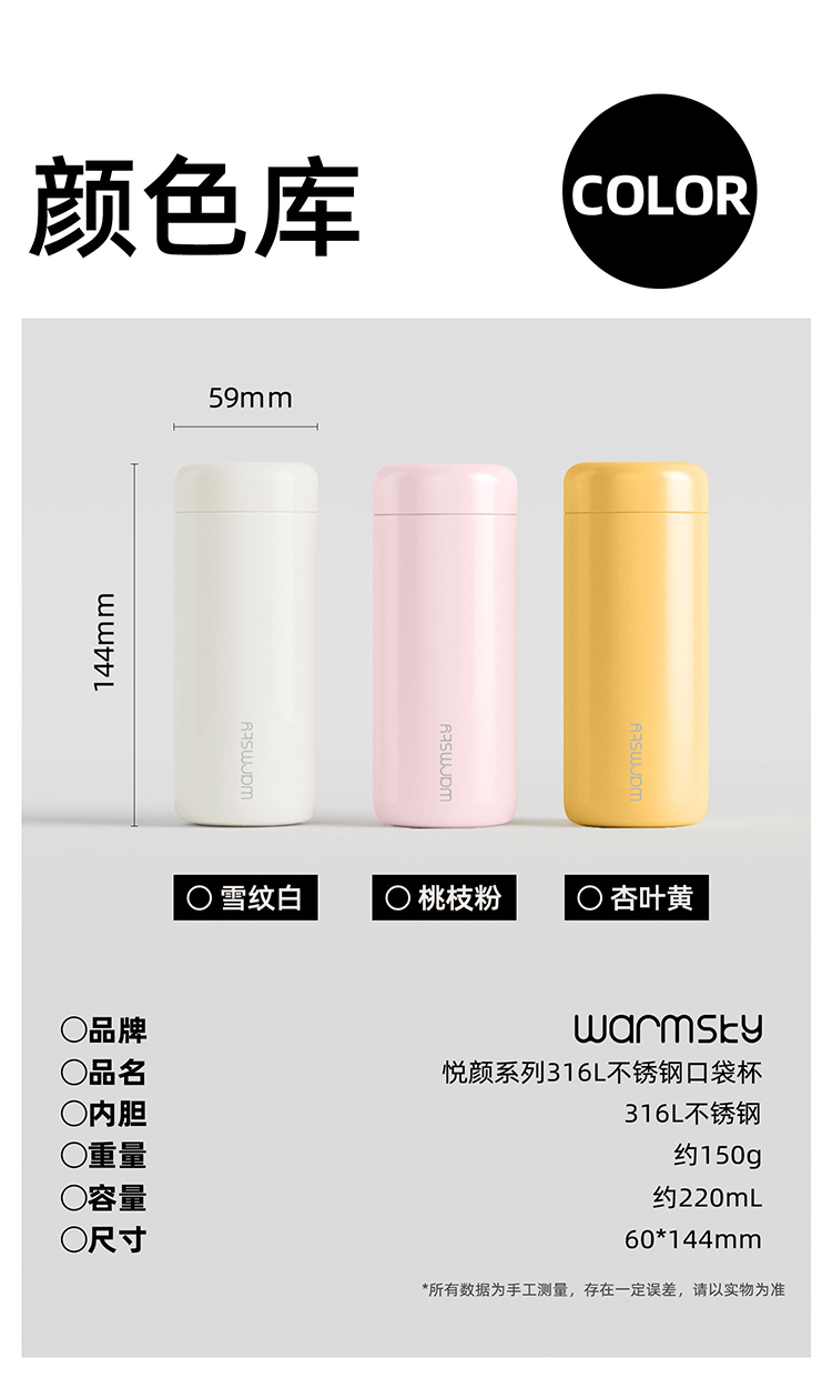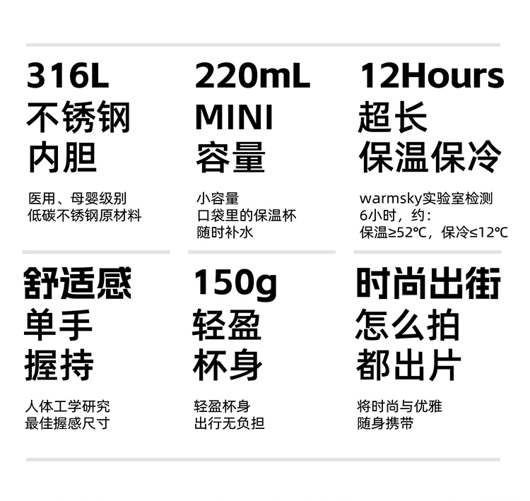 WARMSKY316L医用级不锈钢便携随行水杯子 口袋版保温冷小巧男女学生送礼保温杯