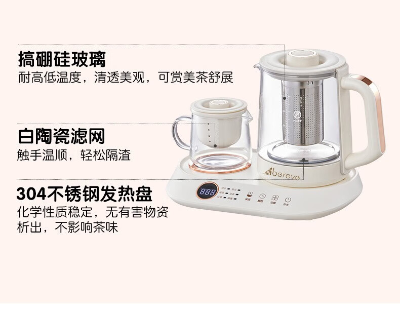 【小家电】艾贝丽 ABL-YSH377 养生壶 电热水壶 长效保温 双壶模式 1L大容量 分体易清洗 家用 HF