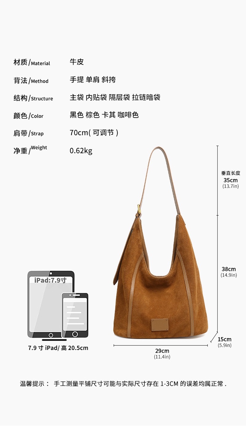 时尚磨砂牛皮单肩腋下包大容量斜挎包