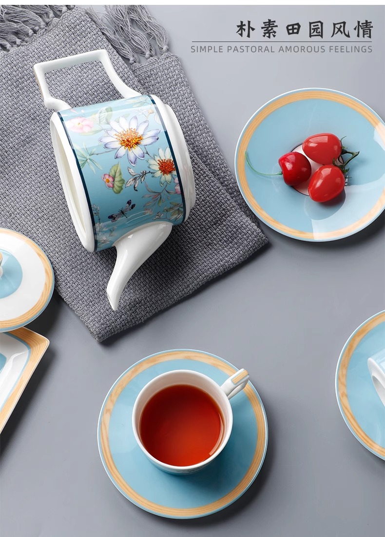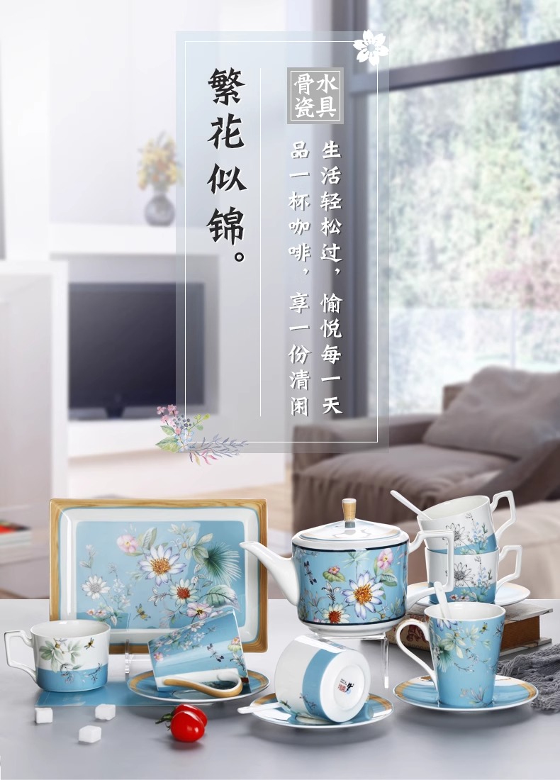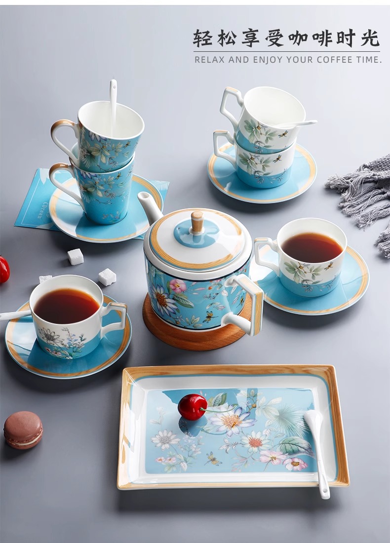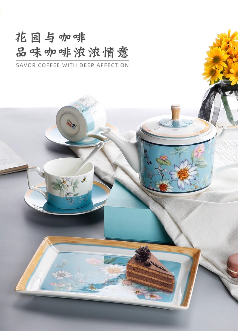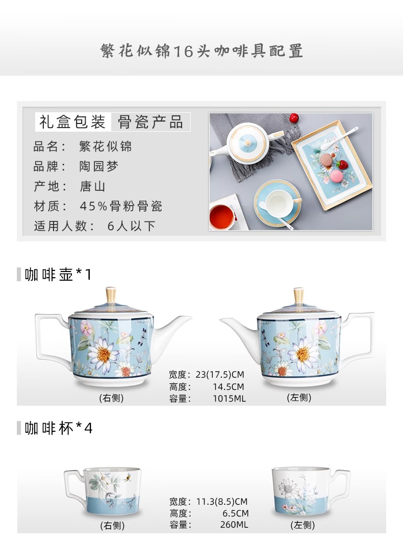 英式下午茶茶具 骨瓷咖啡具欧式 配点心盘6人适用家用送礼咖啡具繁花似锦6人用16头咖啡具