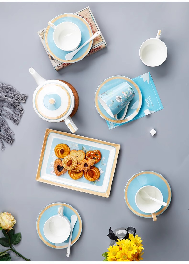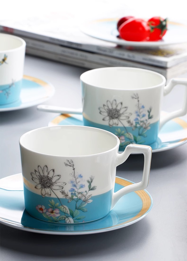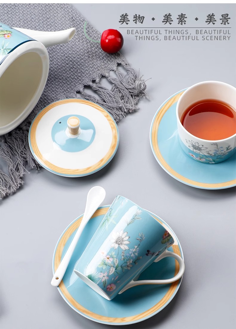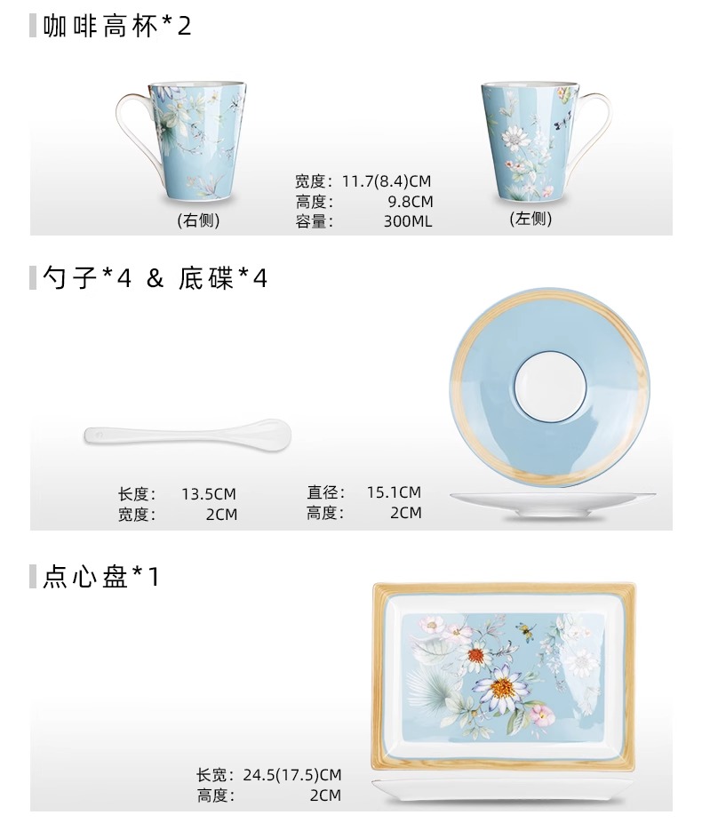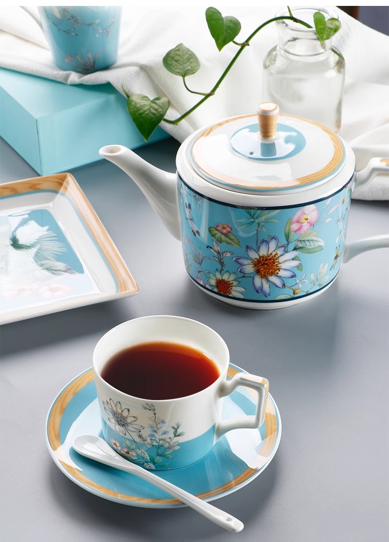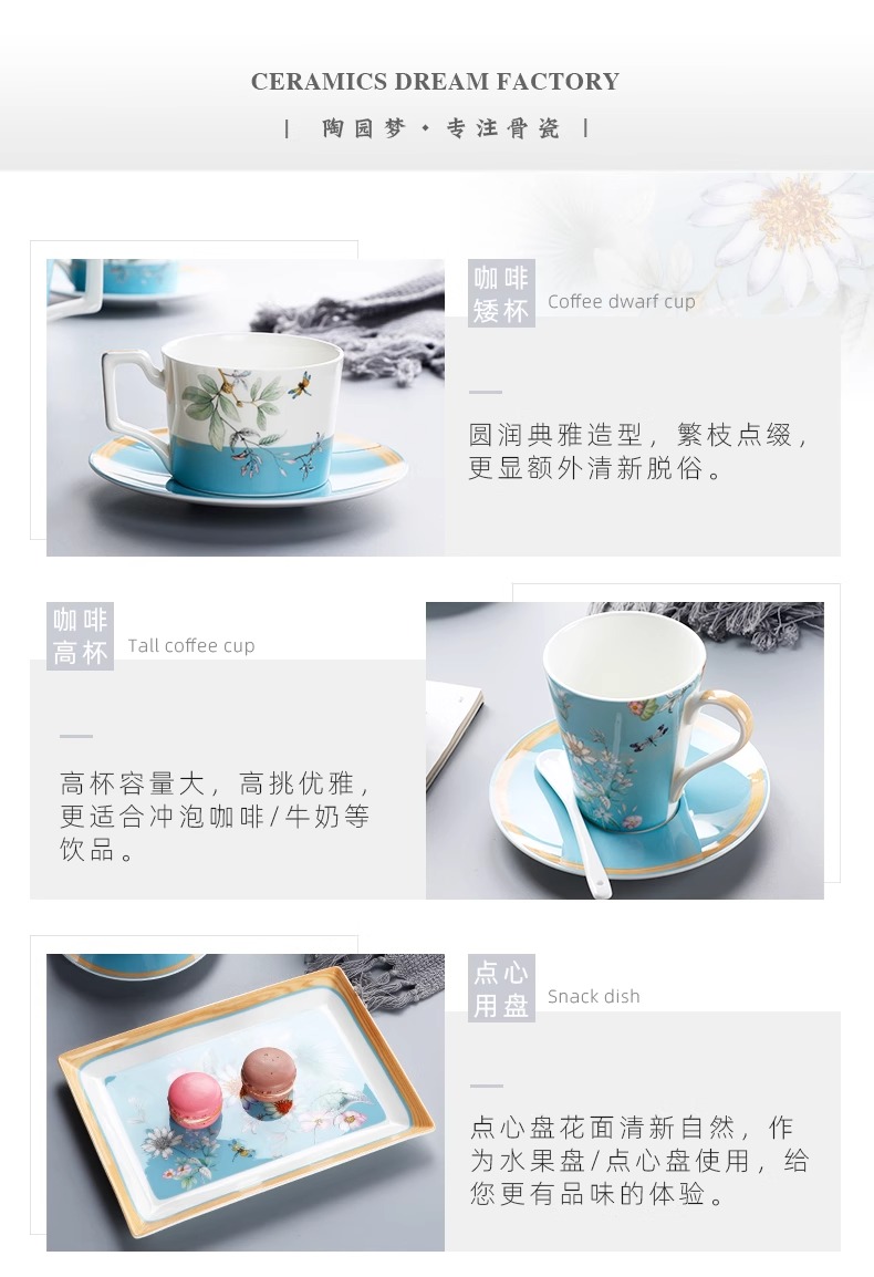 英式下午茶茶具 骨瓷咖啡具欧式 配点心盘6人适用家用送礼咖啡具繁花似锦6人用16头咖啡具