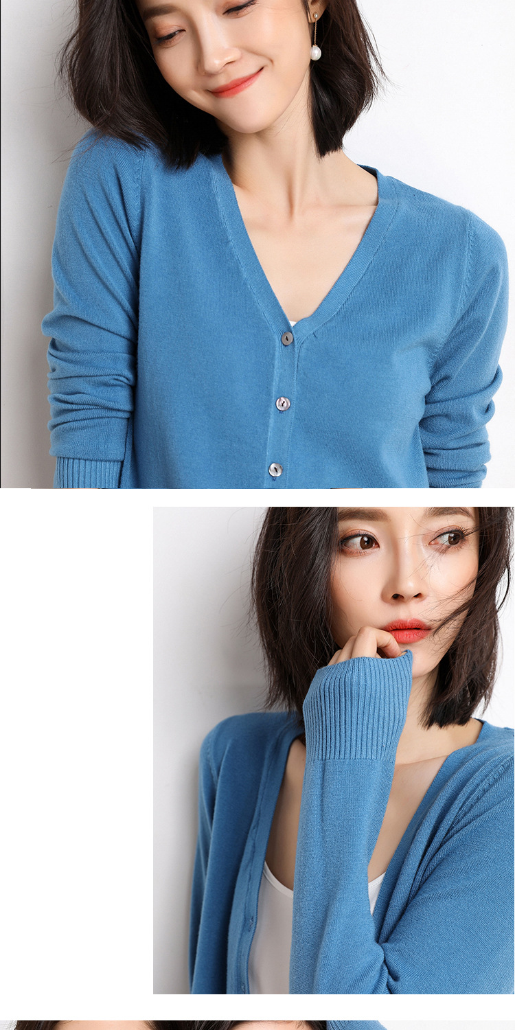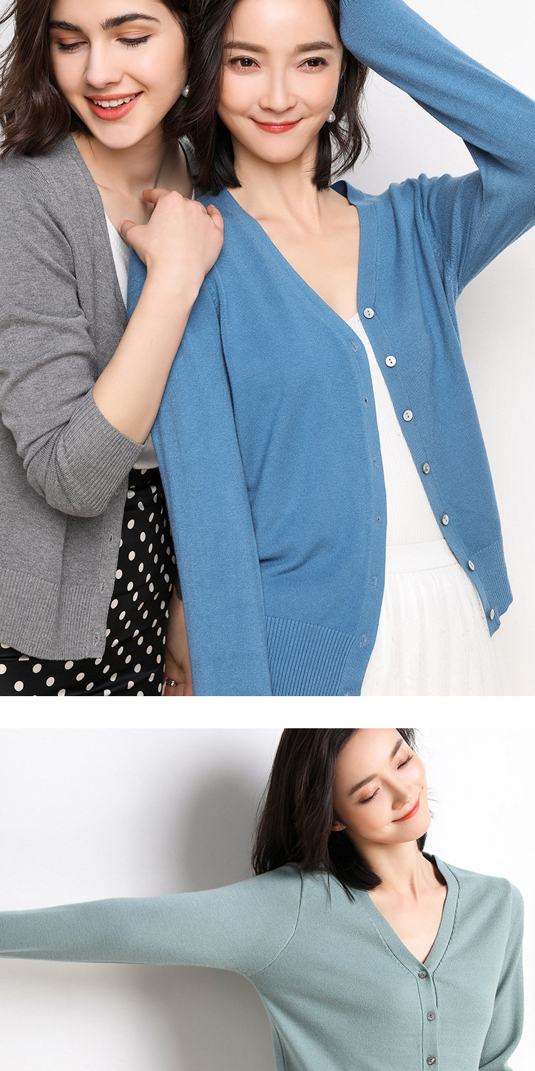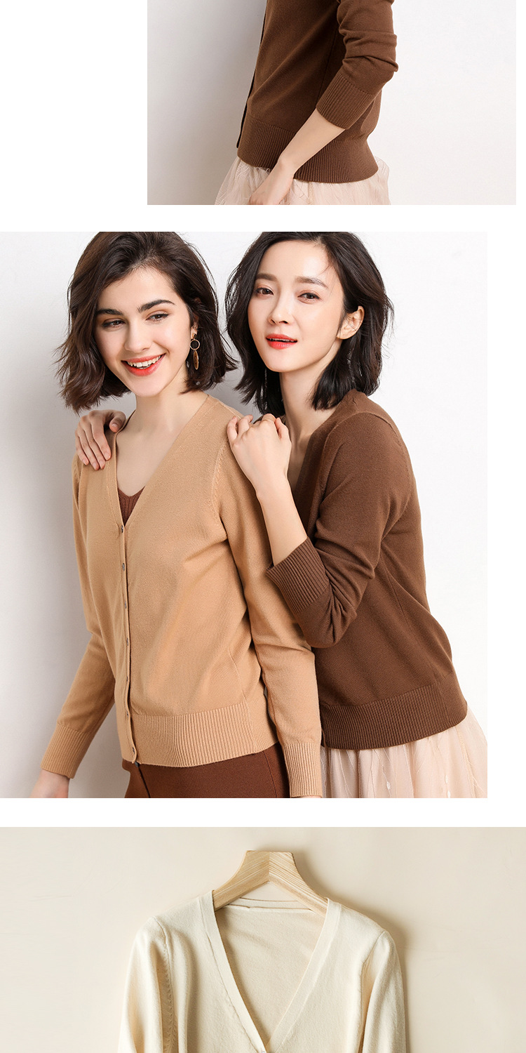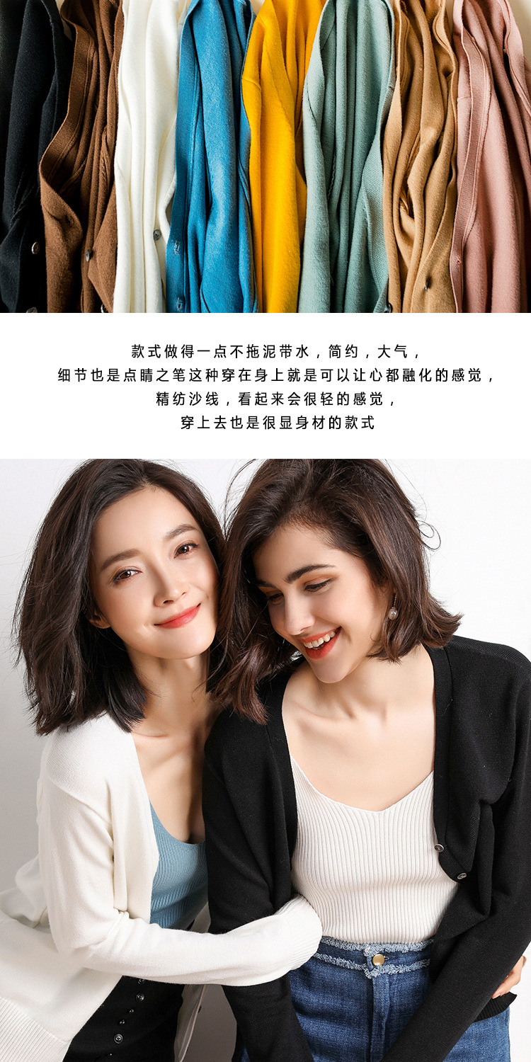 秋季新款内搭新品 新款春秋季薄款针织衫女开衫长袖V领短款毛衣小披肩外套上衣