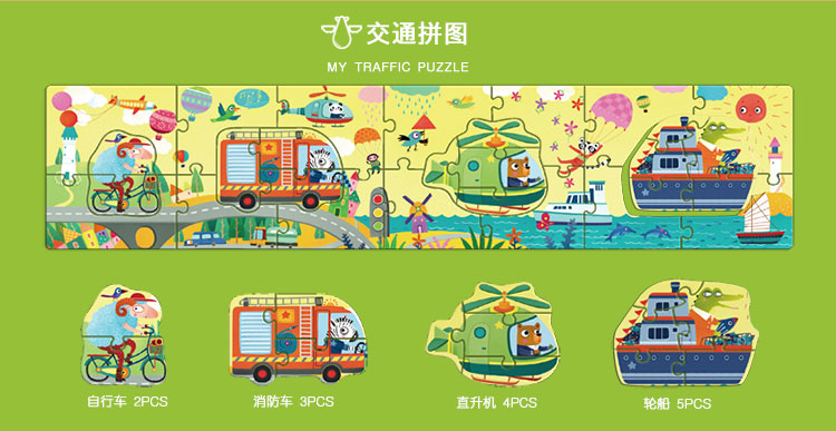 弥鹿 MD3043 大块地板拼图-忙碌交通 28P
