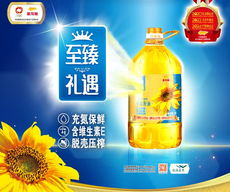 【自营】 金龙鱼 玉至臻礼遇葵花籽油 5L