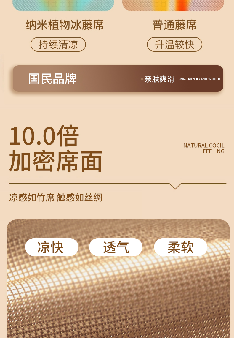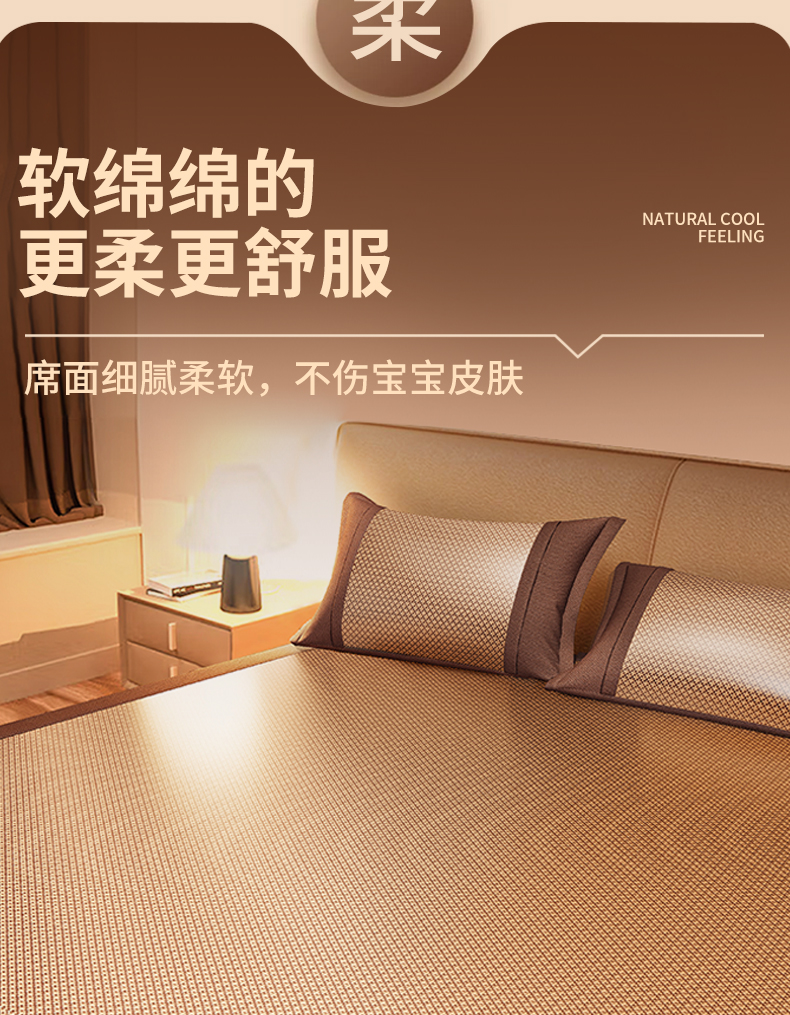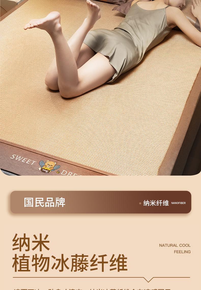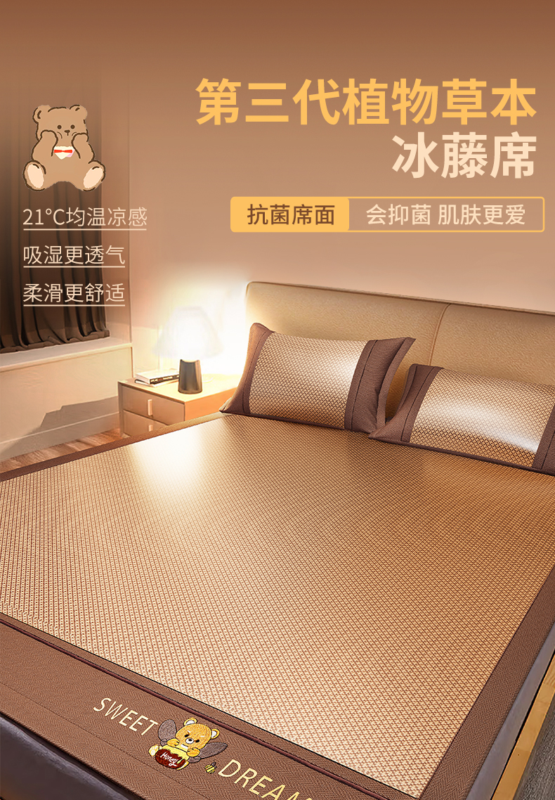 安睡宝 2024新款夏季软席子纳米植物草本冰藤席三件套~裸睡0印痕,0荧光剂0甲醛,够凉快,一觉睡到天亮