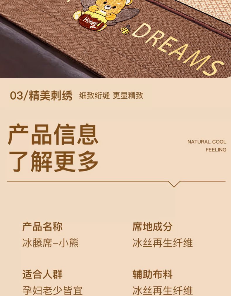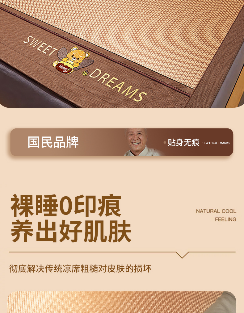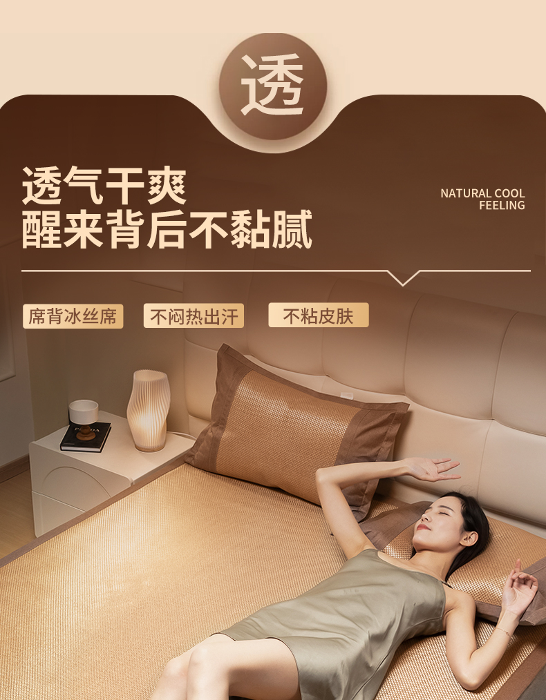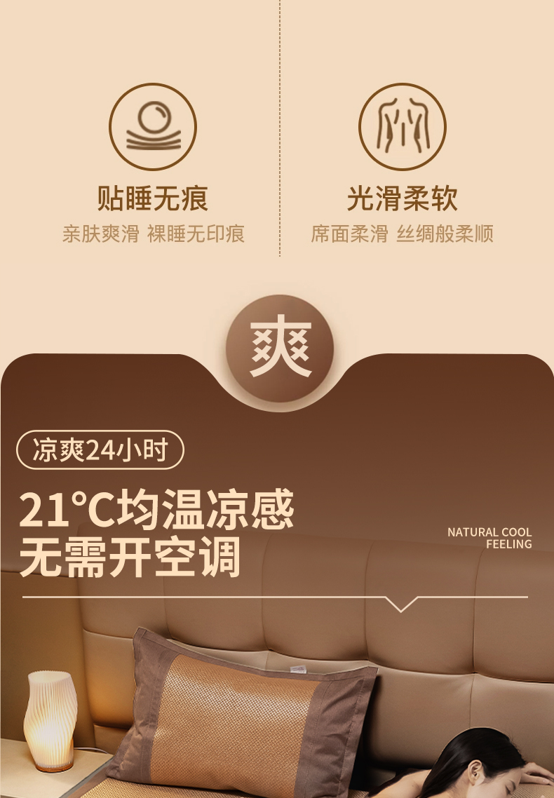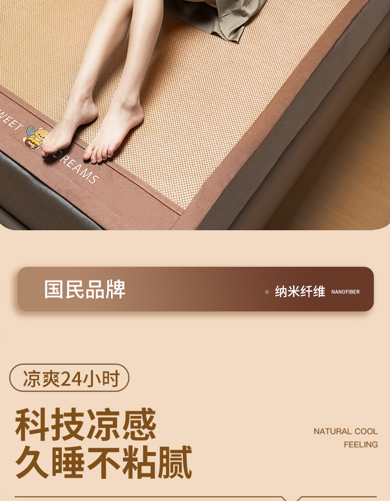 安睡宝 2024新款夏季软席子纳米植物草本冰藤席三件套~裸睡0印痕,0荧光剂0甲醛,够凉快,一觉睡到天亮