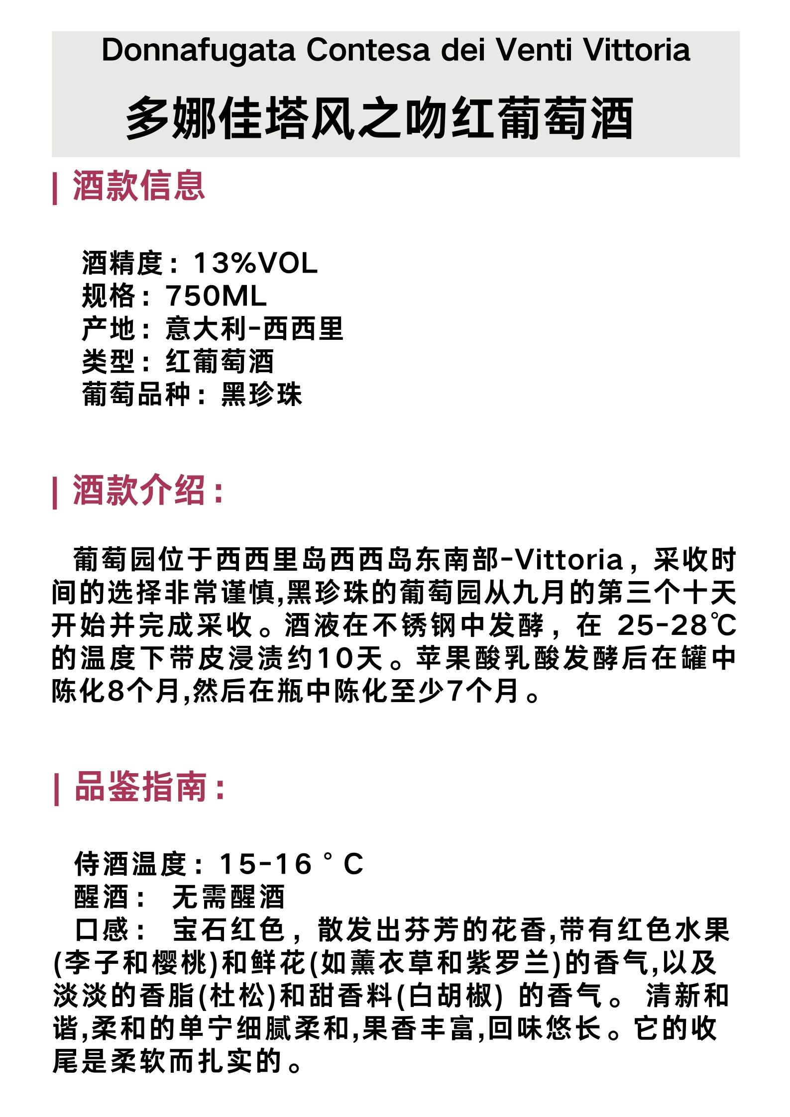 多娜佳塔风之吻红葡萄酒 Donnafugata Contesa dei Venti