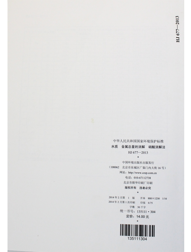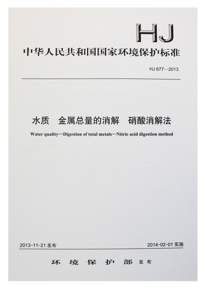 HJ 677-2013 水质 金属总量的消解 硝酸消解法 环境保护部 国家标准 国标 GB 135111304