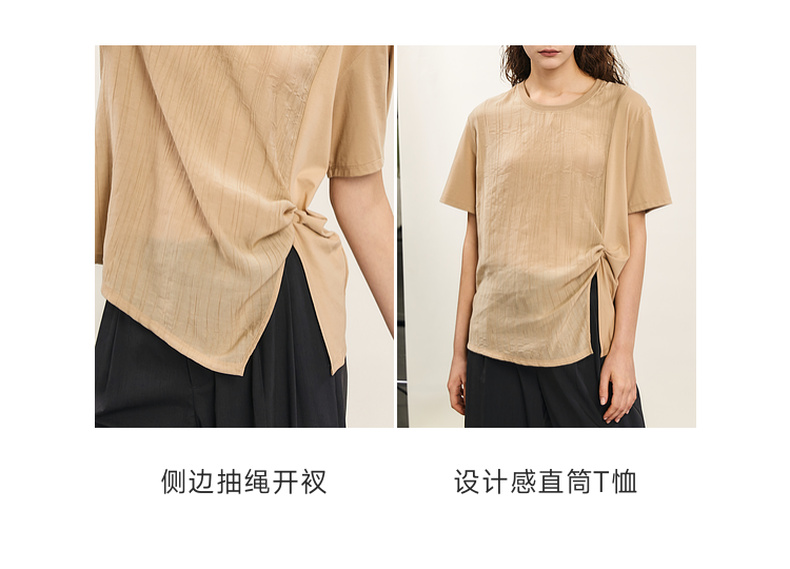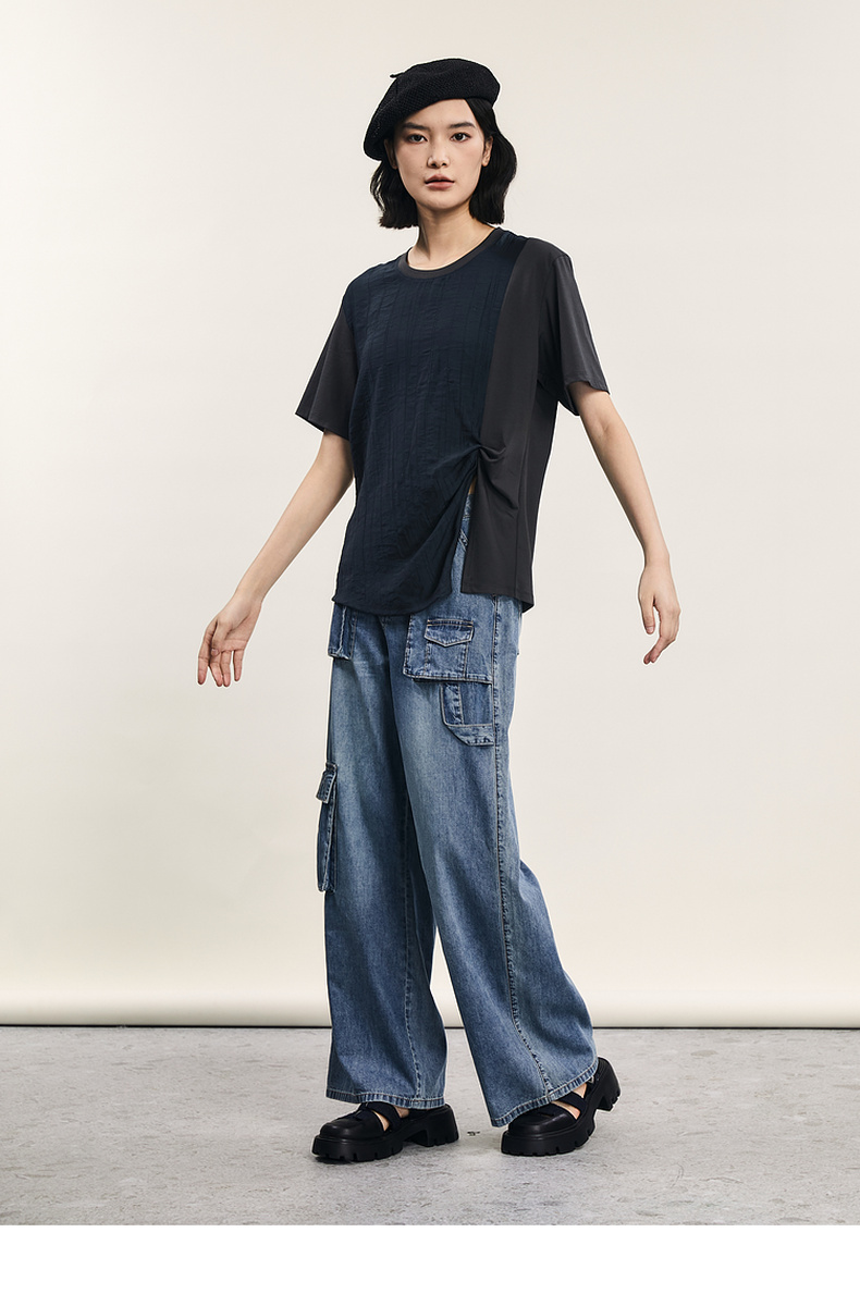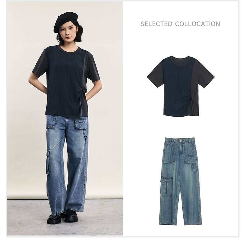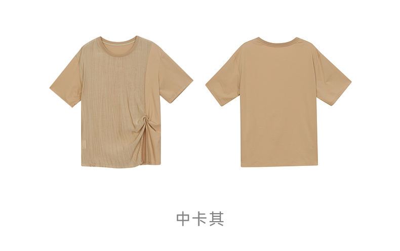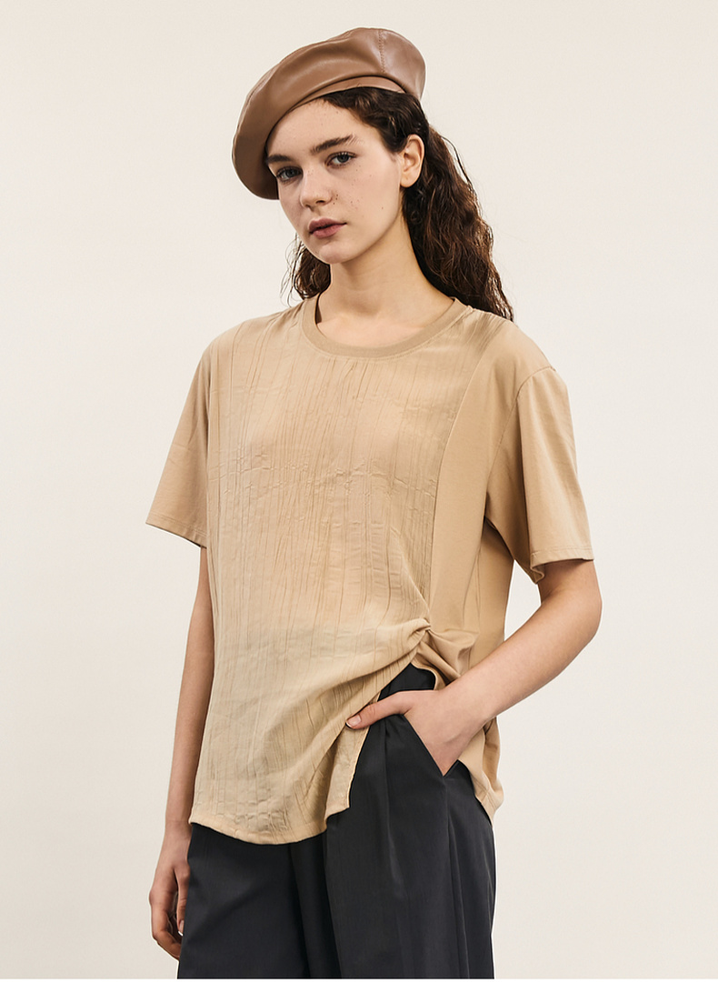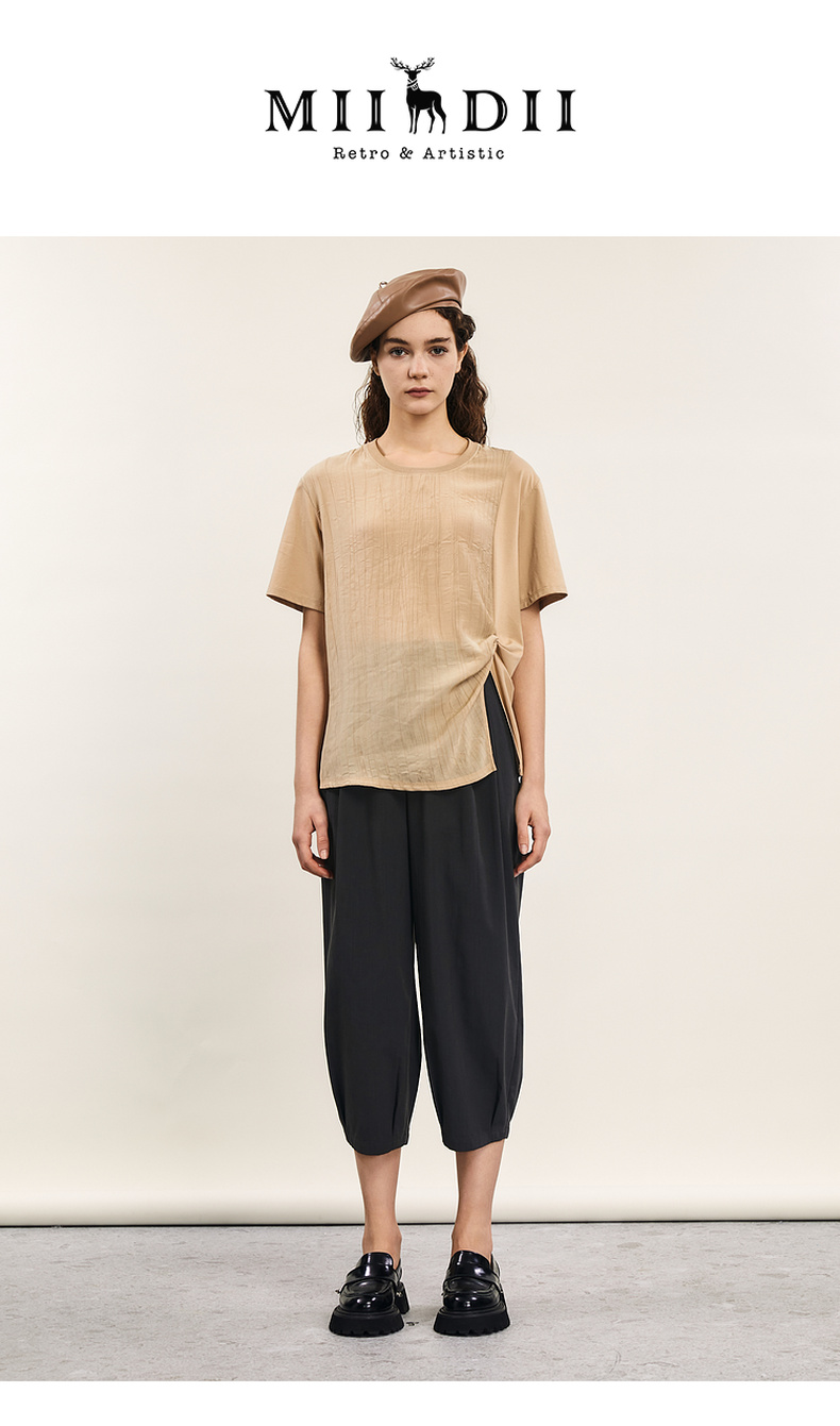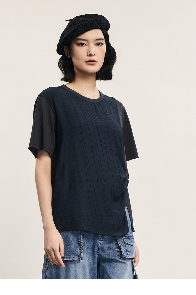 谜底短袖T恤女士2024年夏季新款设计感圆领宽松拼接上衣242MT0703