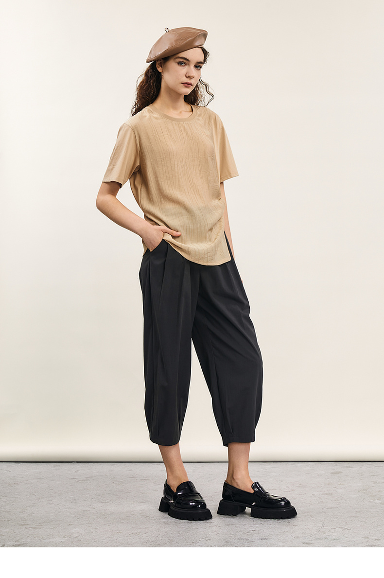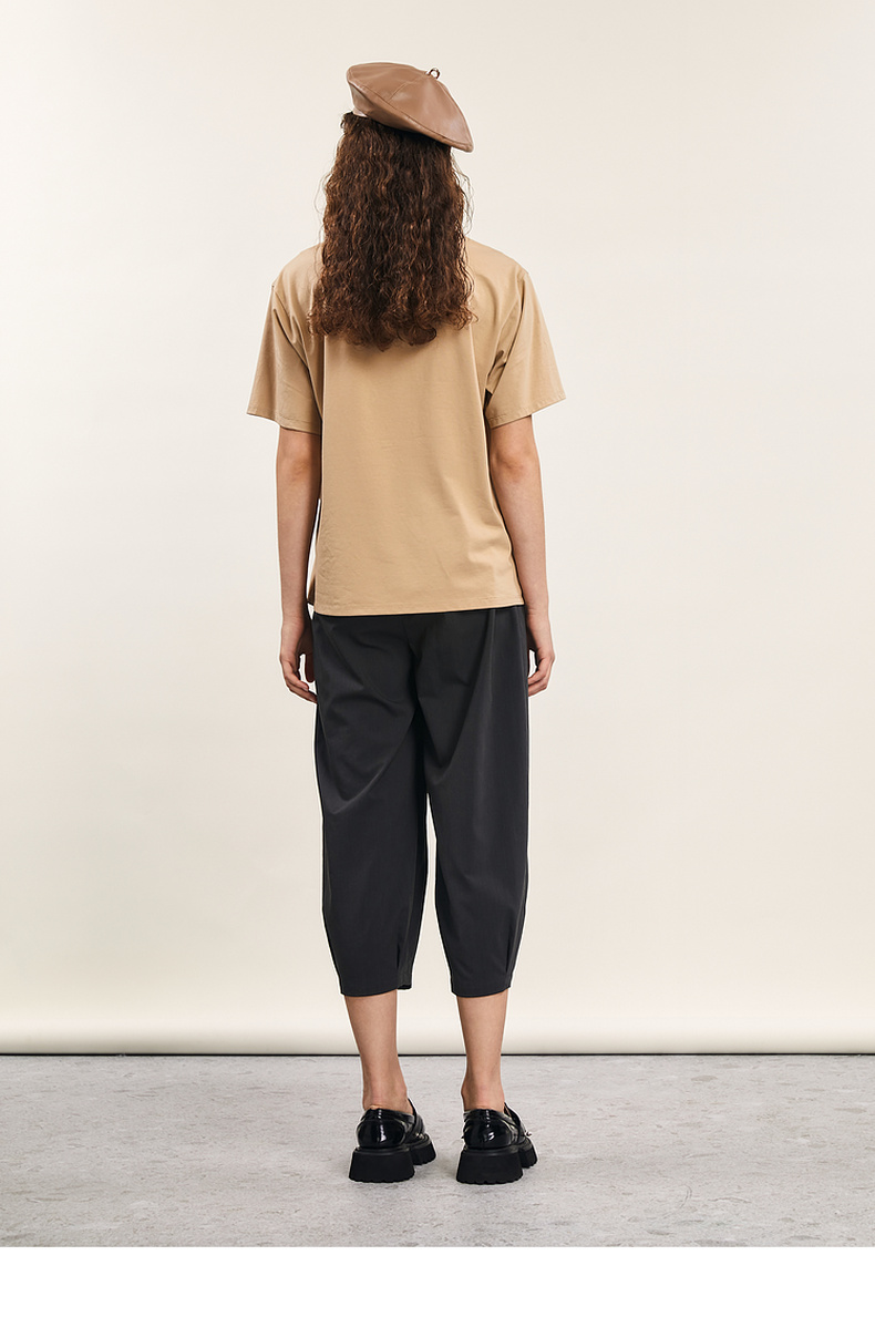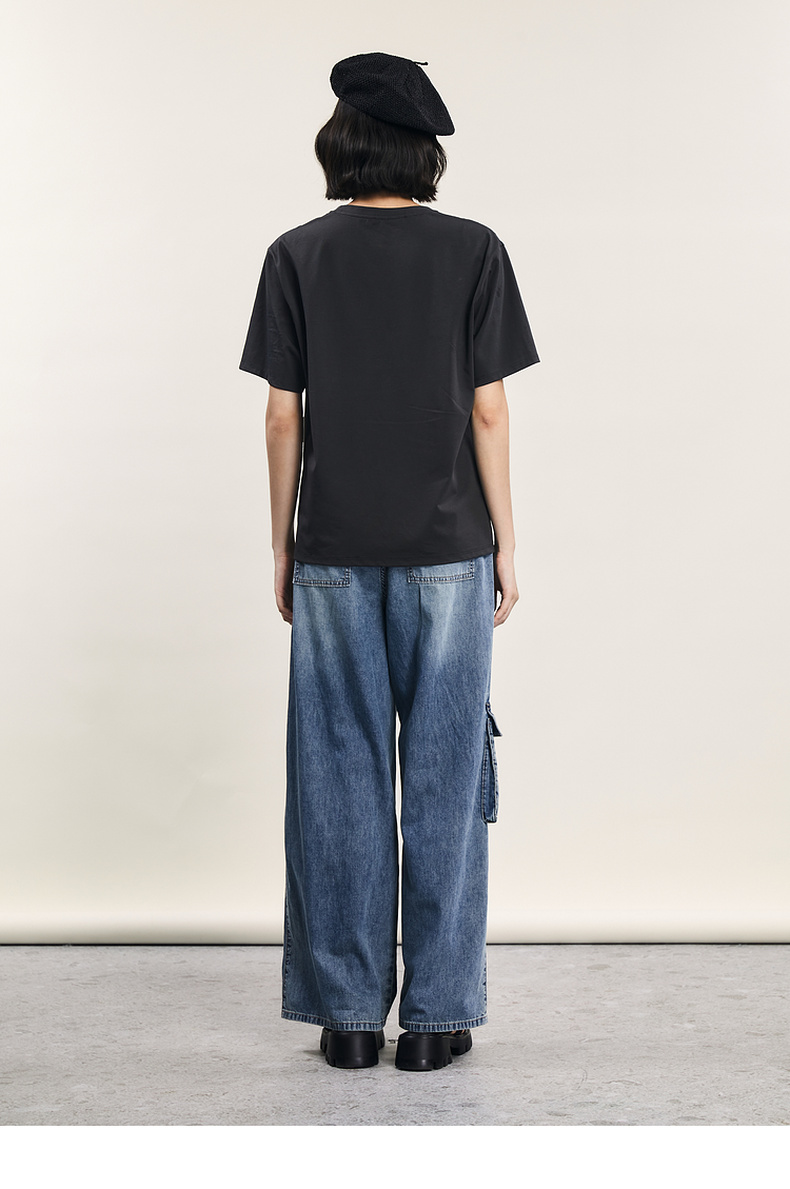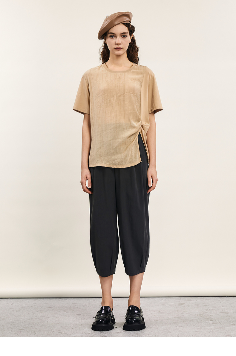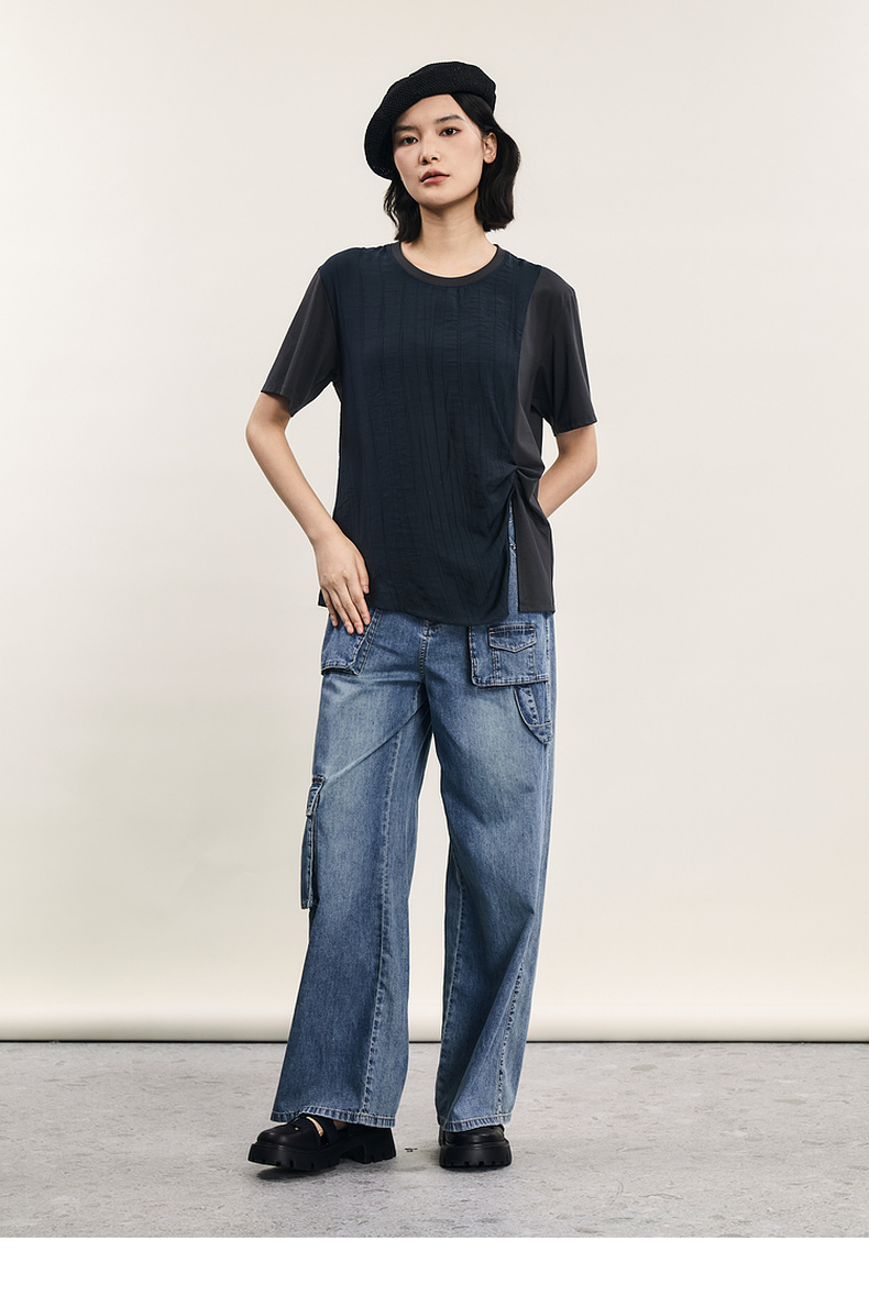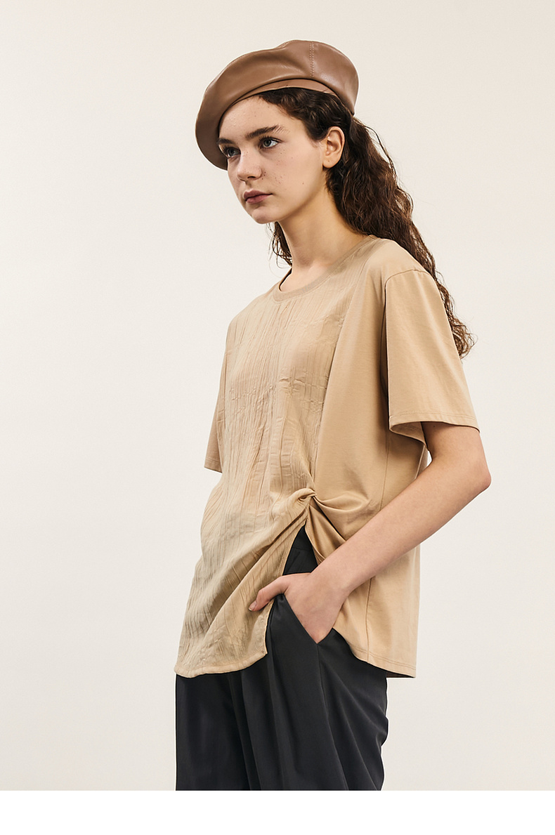 谜底短袖T恤女士2024年夏季新款设计感圆领宽松拼接上衣242MT0703