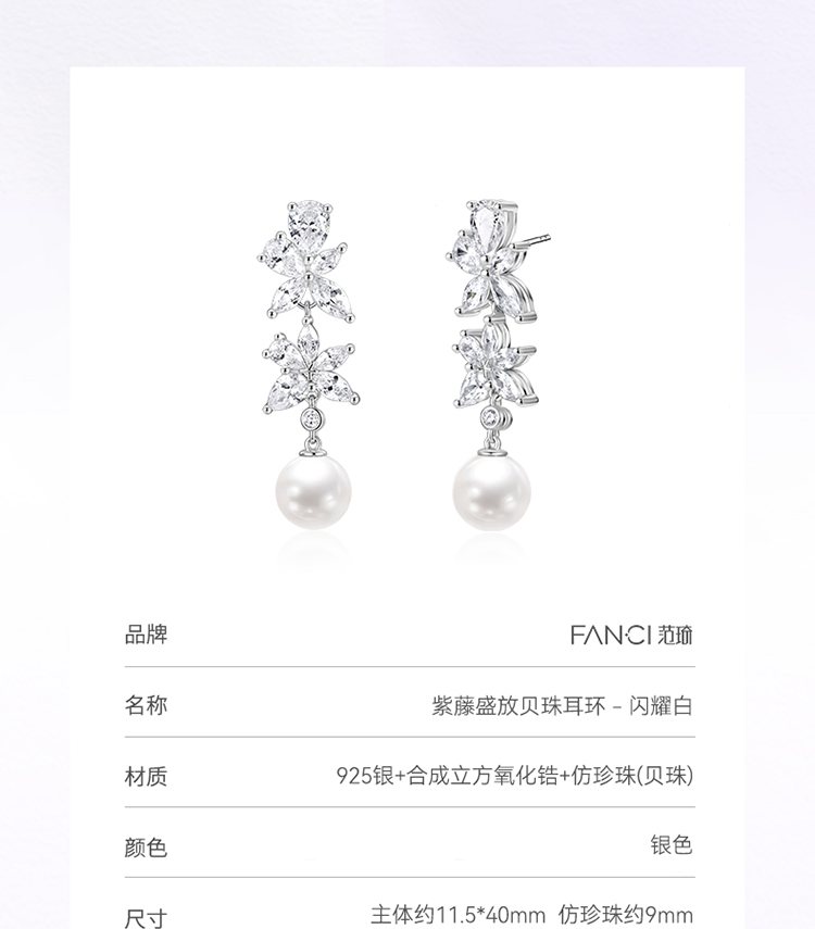 Fanci范琦 紫藤花系列 紫藤盛放贝珠耳环闪耀白 气质款送女生日礼物