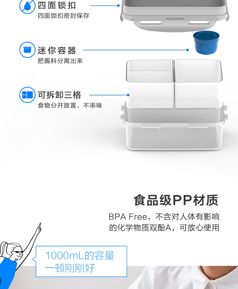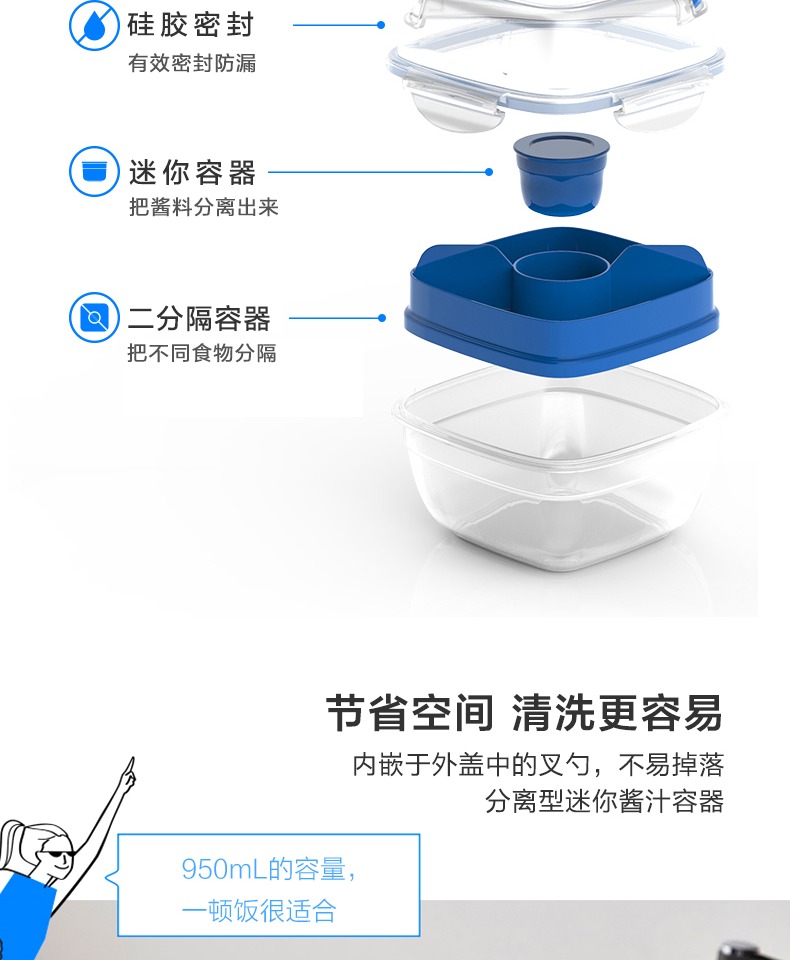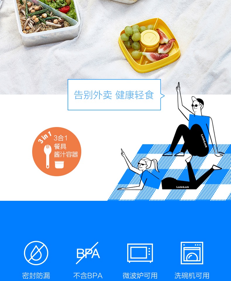 乐扣乐扣新款饭盒保鲜盒塑料分隔便当盒水果便携轻食减脂沙拉盒