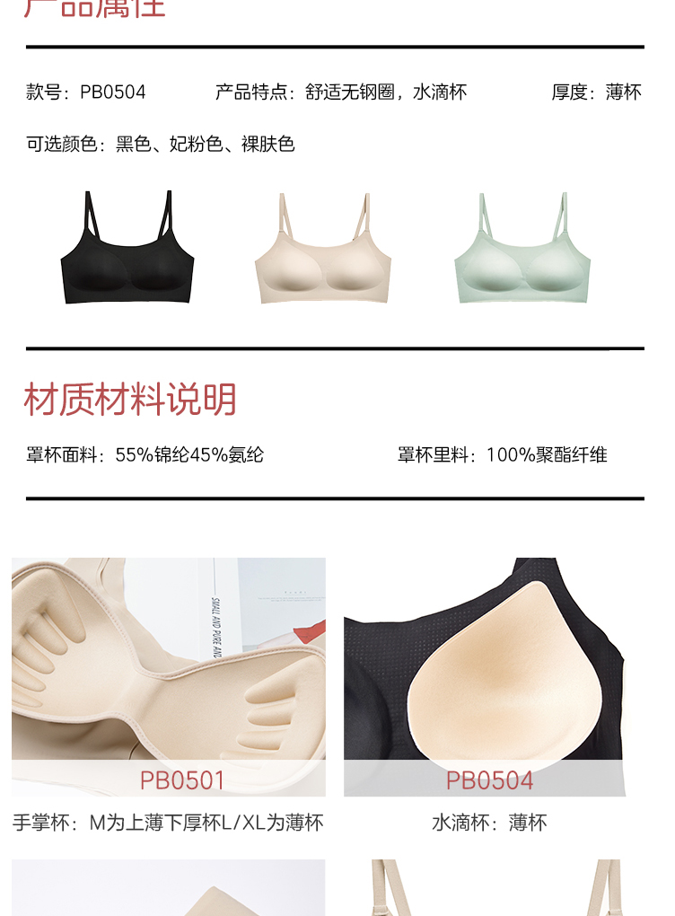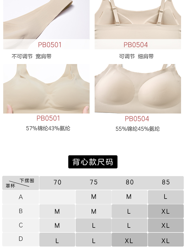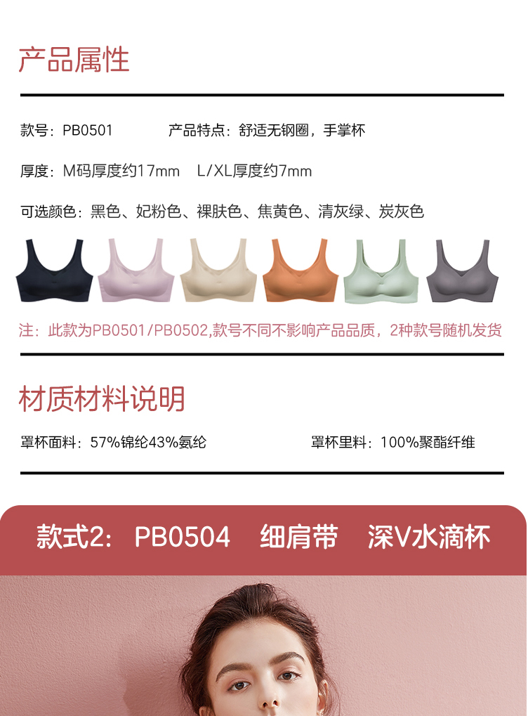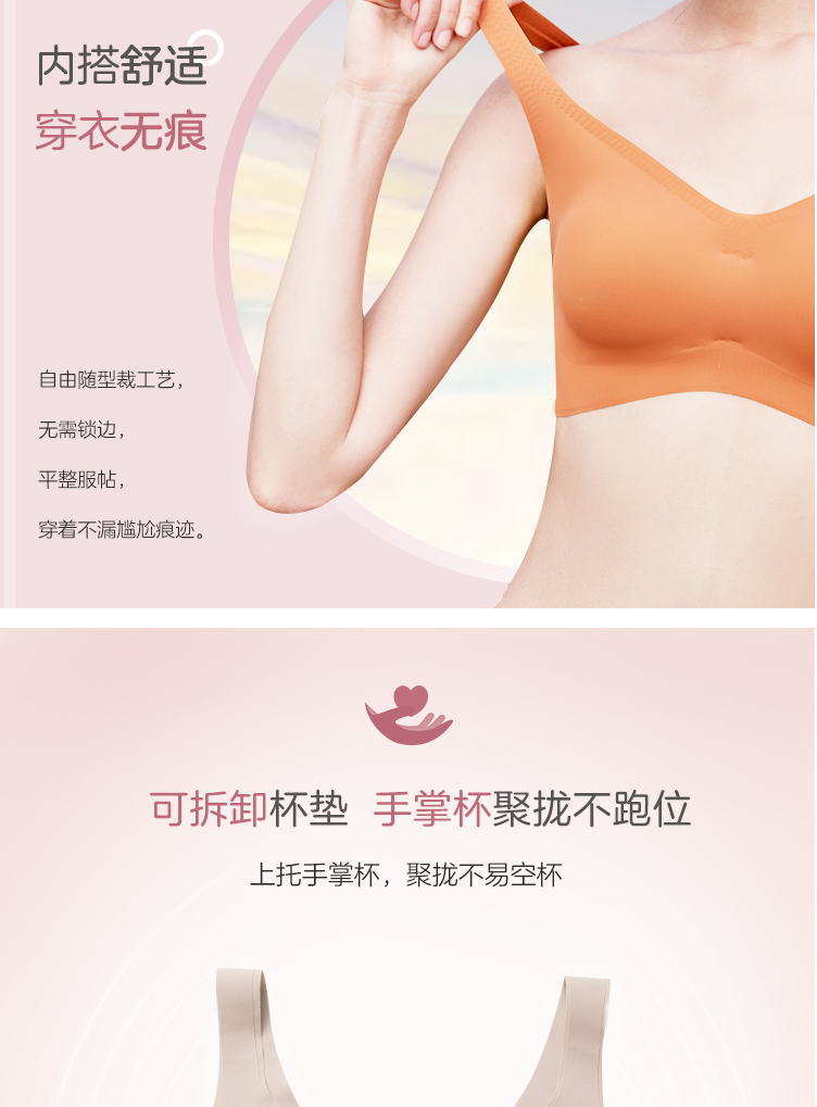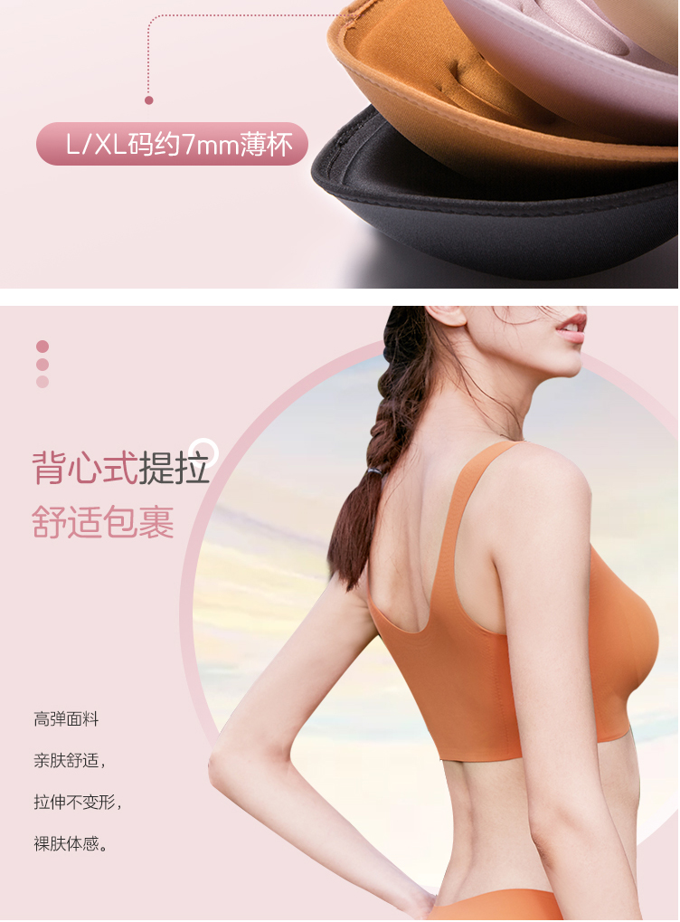 欧迪芬O+女士内衣舒适无钢圈胸罩无痕聚拢手掌杯背心式文胸PB0501