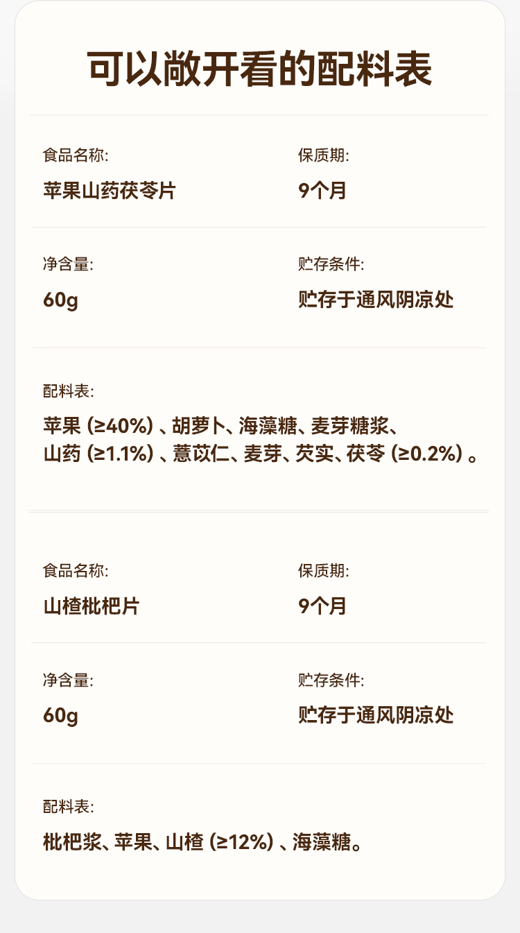 【⚡19.9秒杀 2袋】苹果山药茯苓果片60g/山楂枇杷片60g*2,叠加店铺满赠,不叠加店铺满减和会员折扣