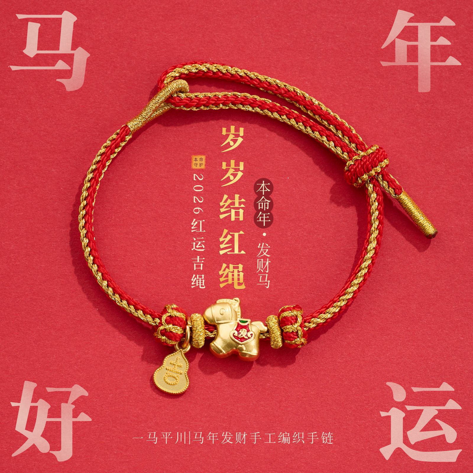 【吉祥发财❗️红运相伴】2026马年新年手绳马年好运红绳手链DIY手工编织本命年男女好运礼物。jc