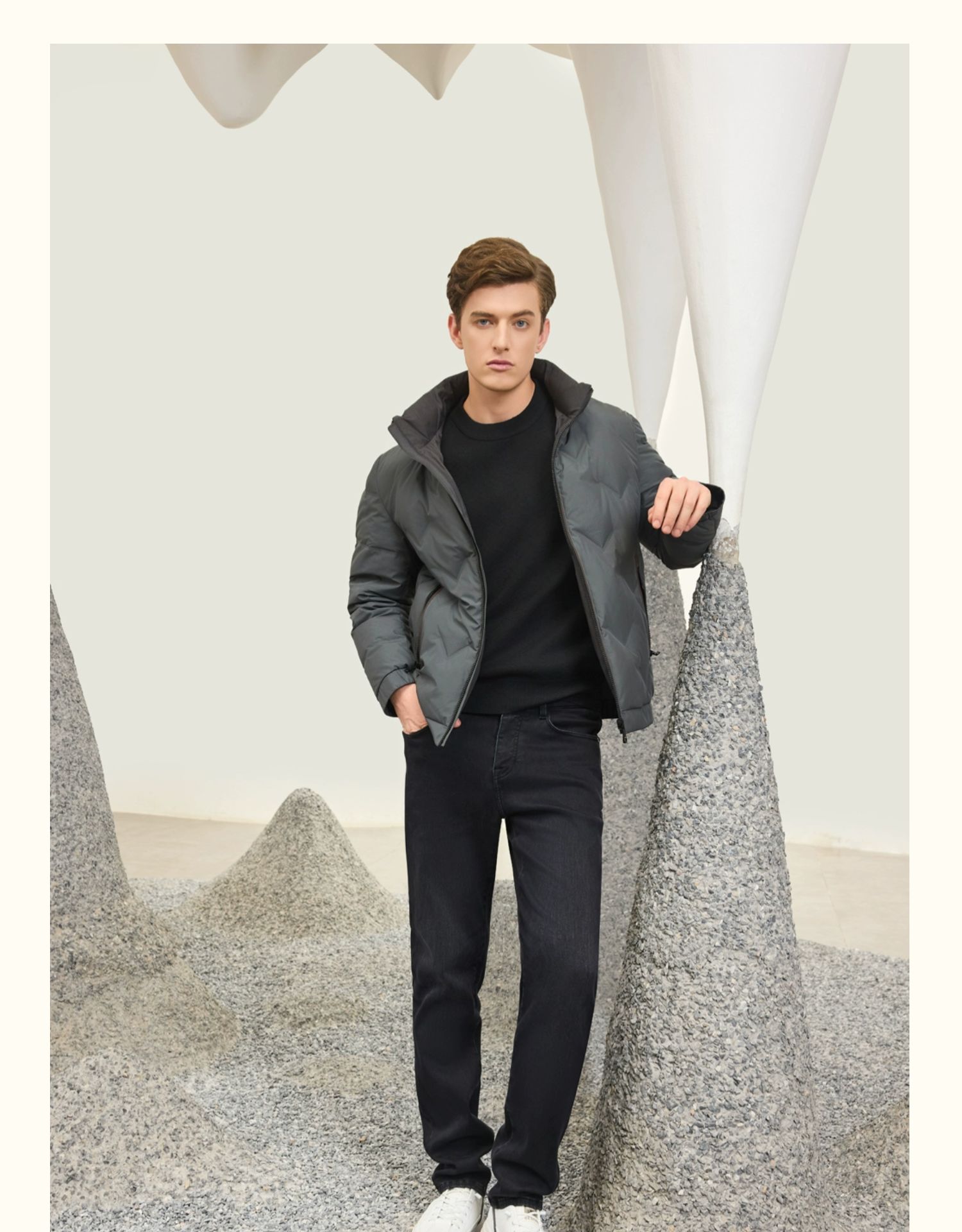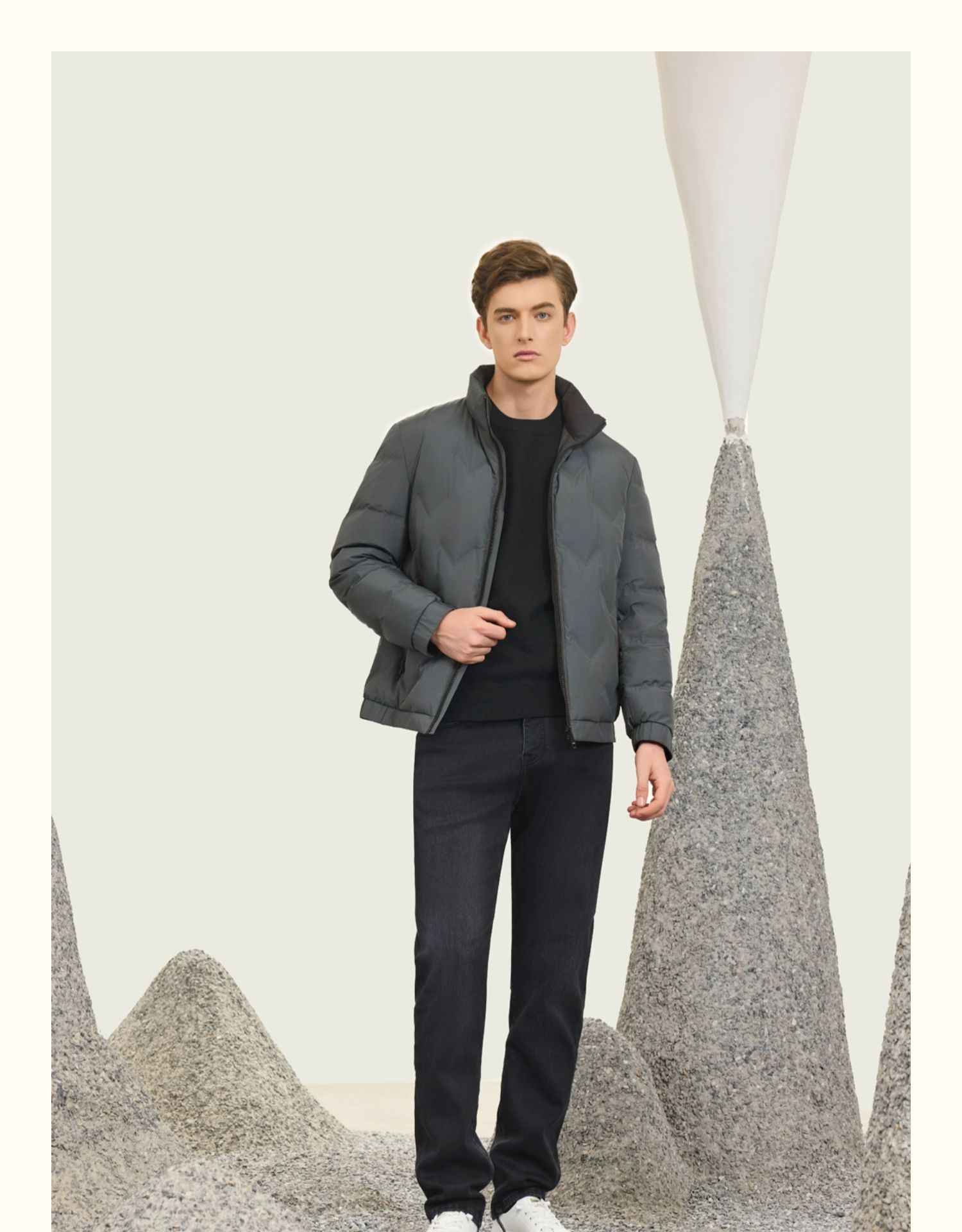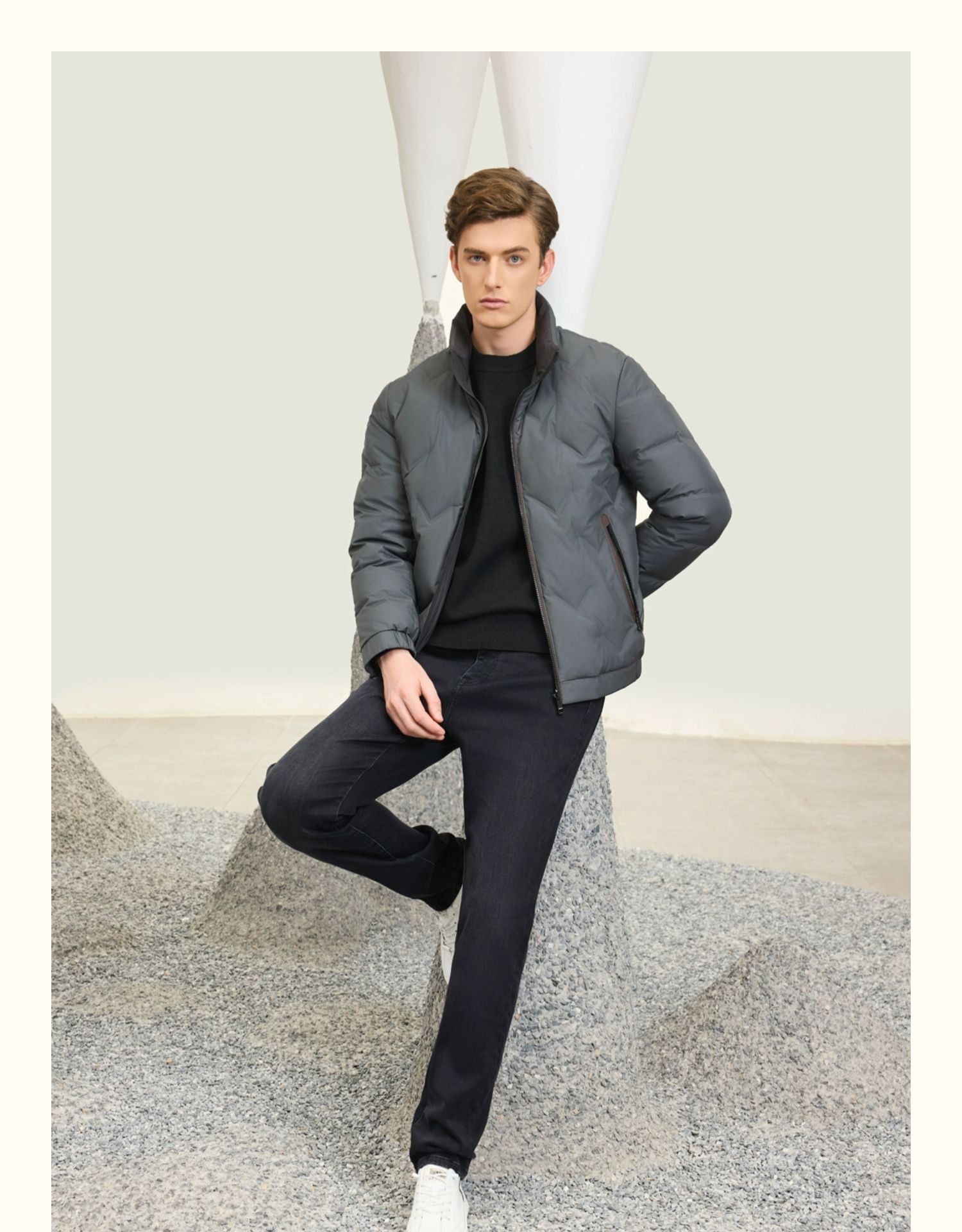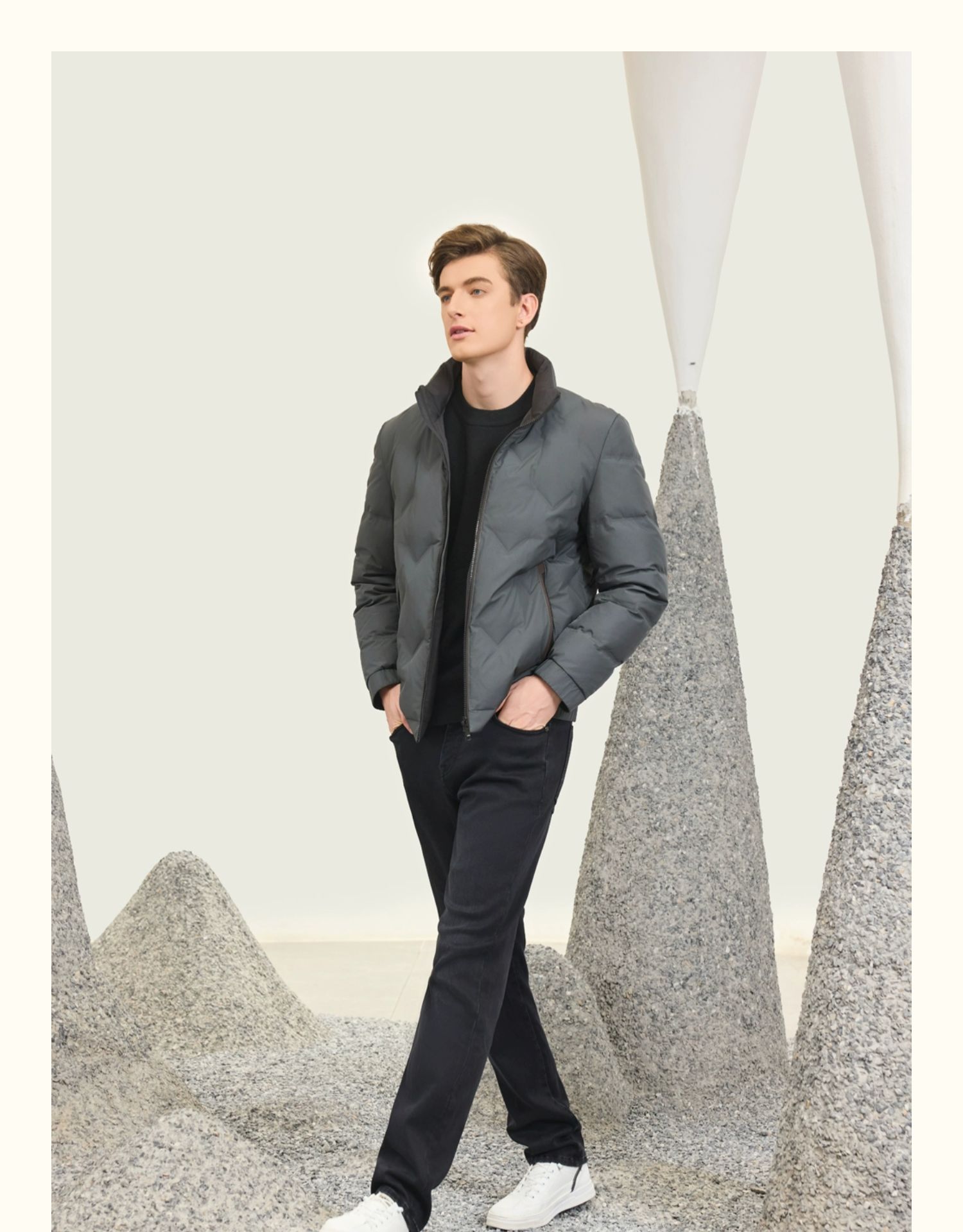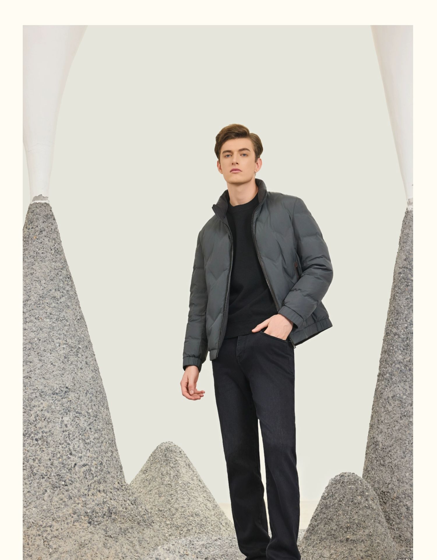 半身缘男装 冬季短款立领简单轻盈舒适双面穿羽绒服254212M01712954