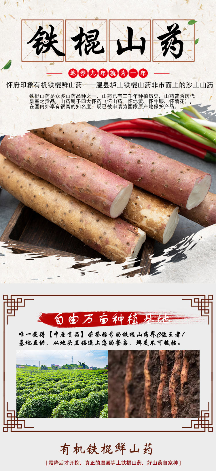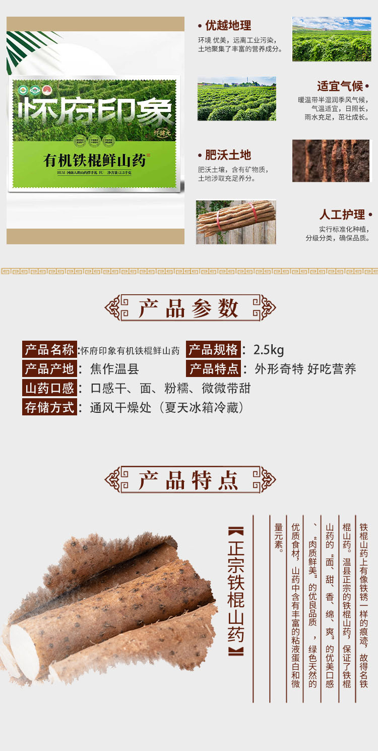 温县有机铁棍鲜山药  5斤 商品图1