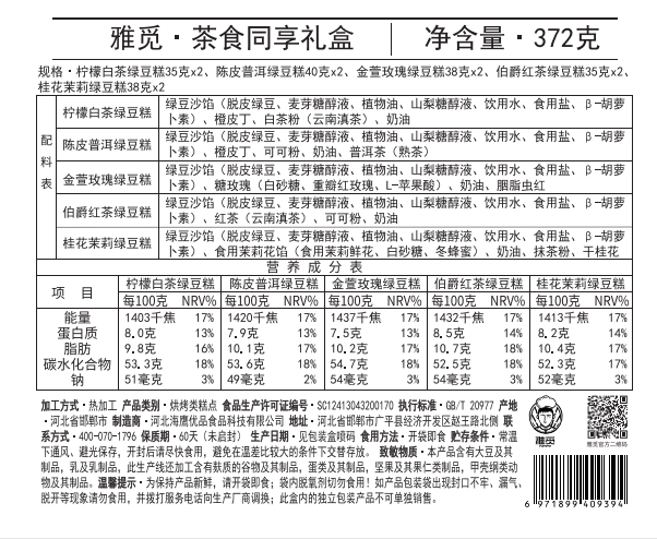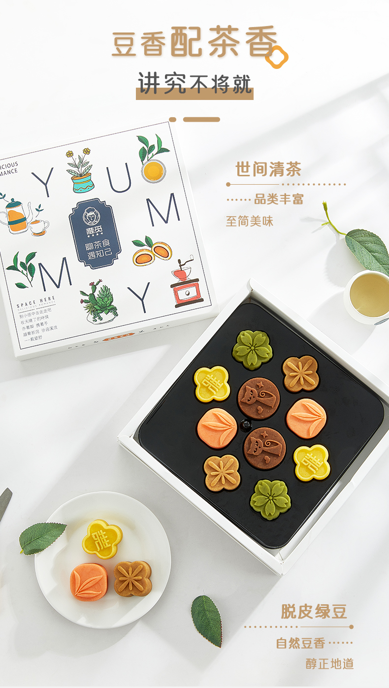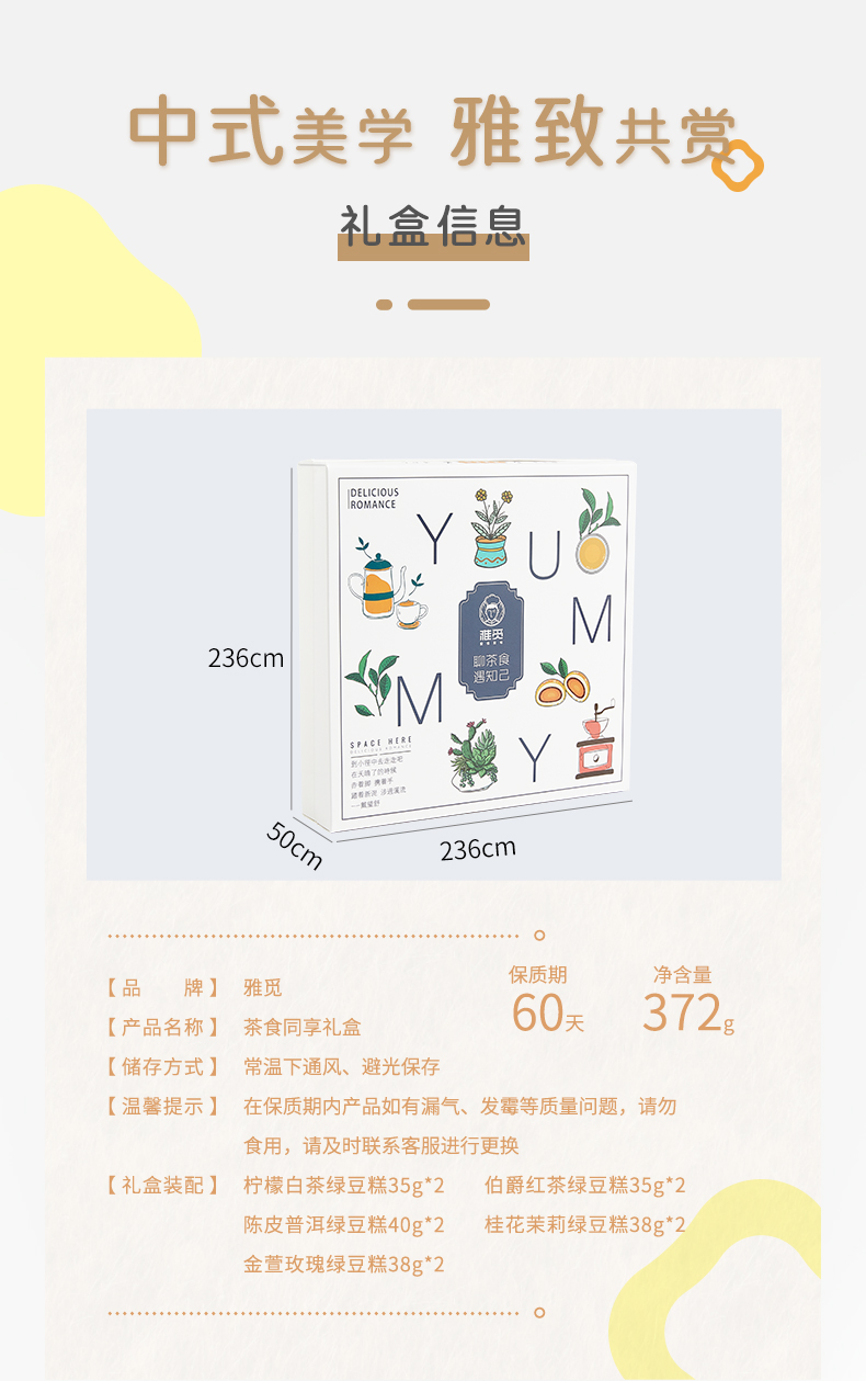 雅觅 茶食同享372g 10粒茶元素绿豆糕礼盒 点心零食小吃休闲食品下午茶送礼