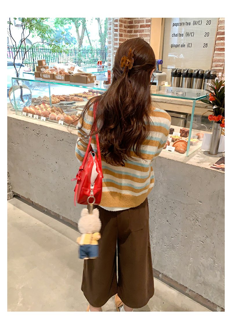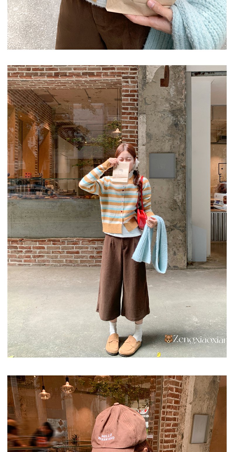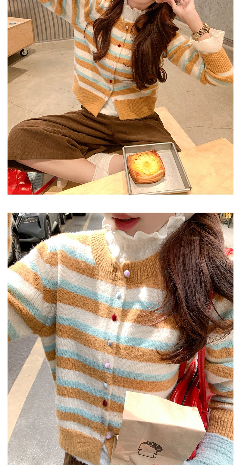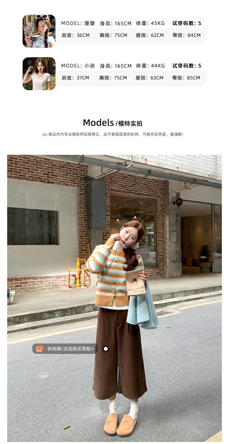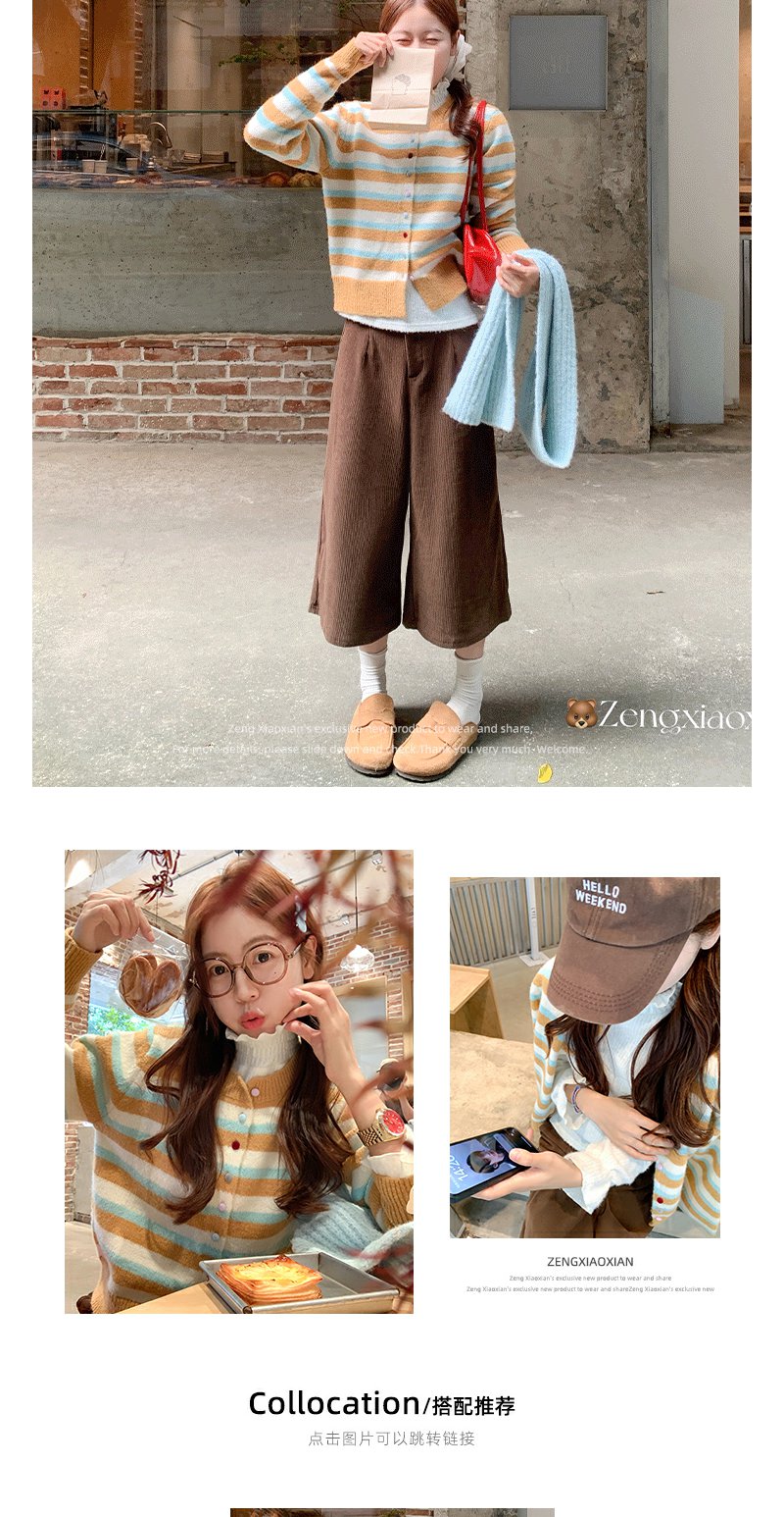 <曾小咸推荐> 现货秒杀!微信超特价!咖色条纹短款毛衣开衫 日常189.99 立减100 秒杀89.99!