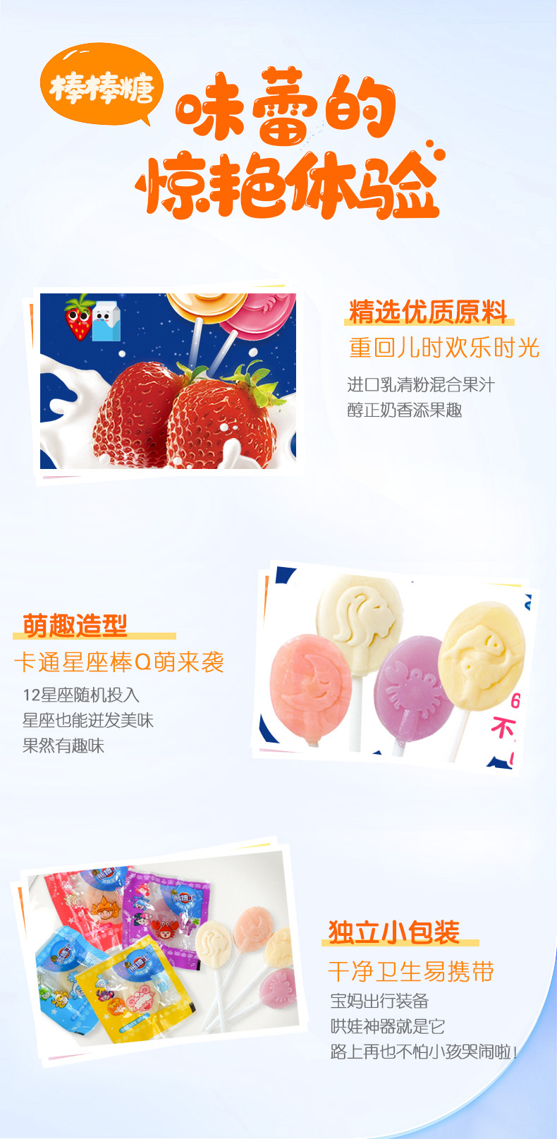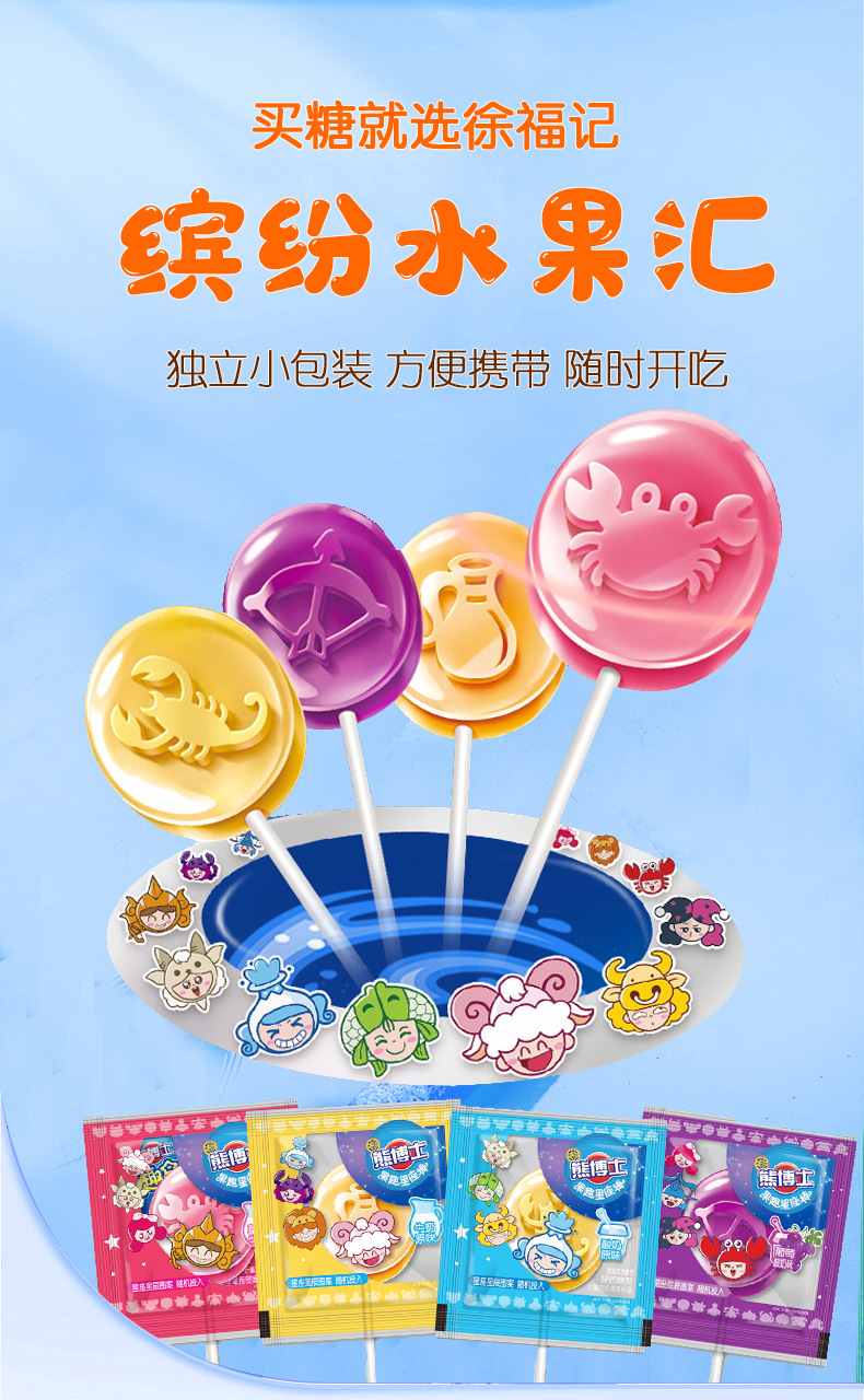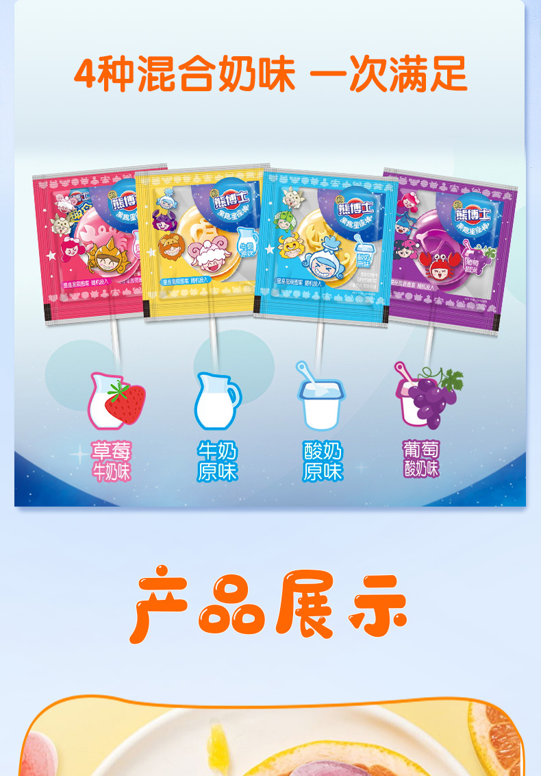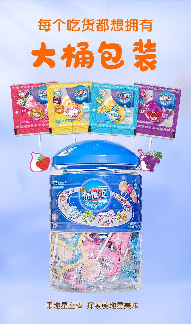 「30支装!四种口味」徐福记熊博士星座棒棒糖 牛奶水果味混合零食糖果礼物零食