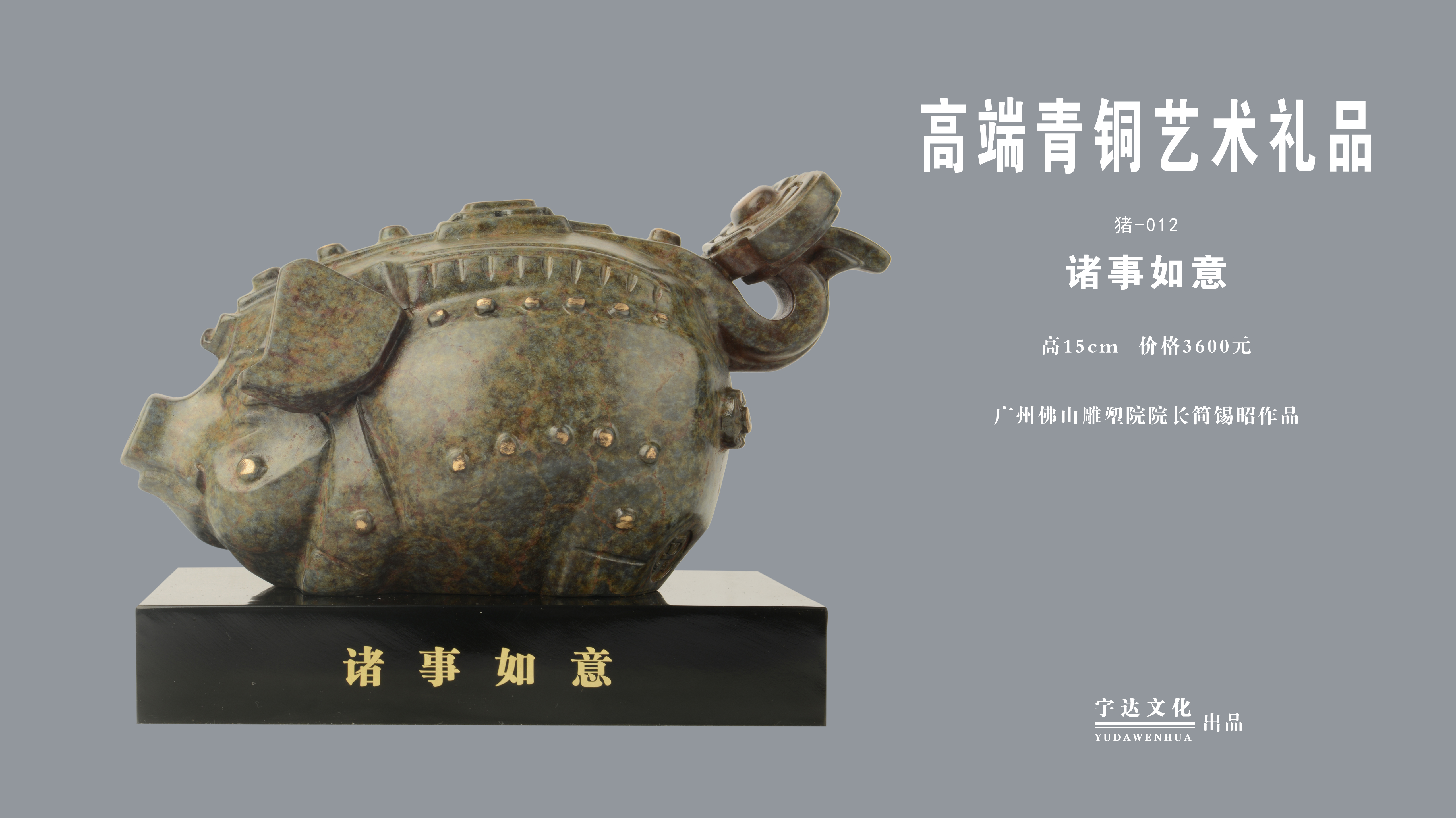 宇达青铜摆件 十二生肖猪《诸事如意》创意装饰 家居工艺摆件 高15cm