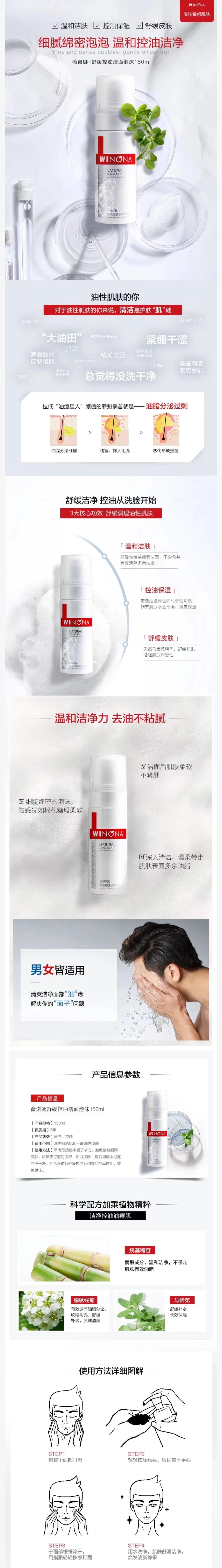 薇诺娜舒缓控油洁面泡沫150ml
