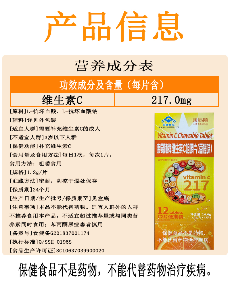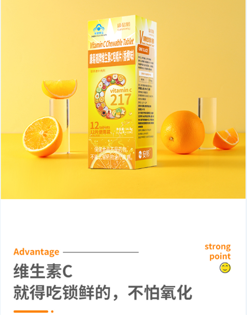 🍊 安邦康易随维生素C咀嚼片香橙味单袋锁鲜装维C 🌟