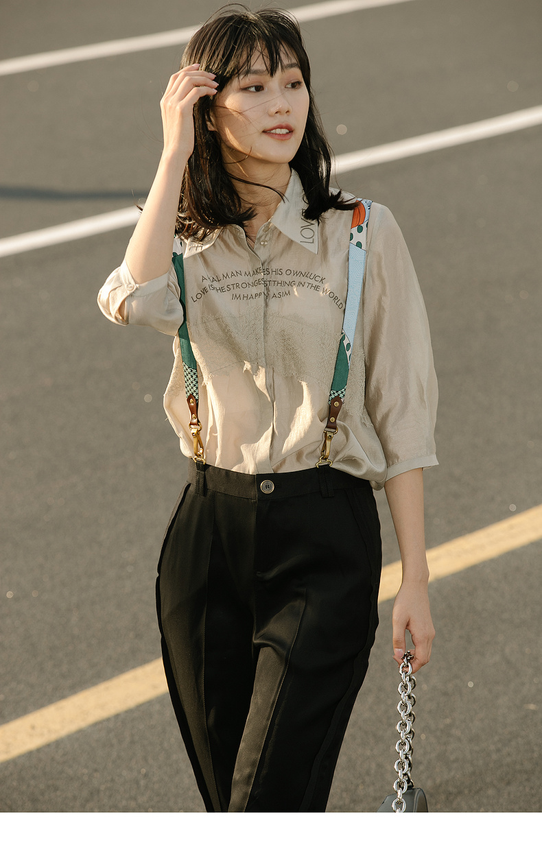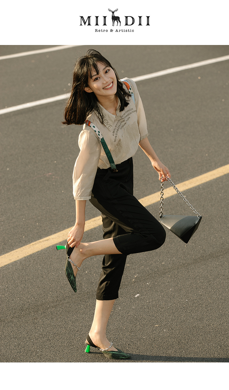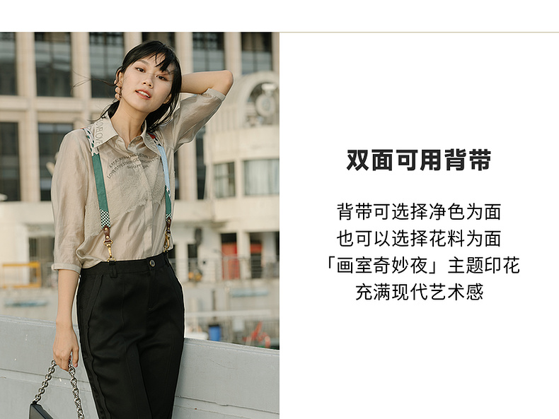 谜底2022夏季新款复古时尚个性可拆卸背带休闲裤女225MK6041
