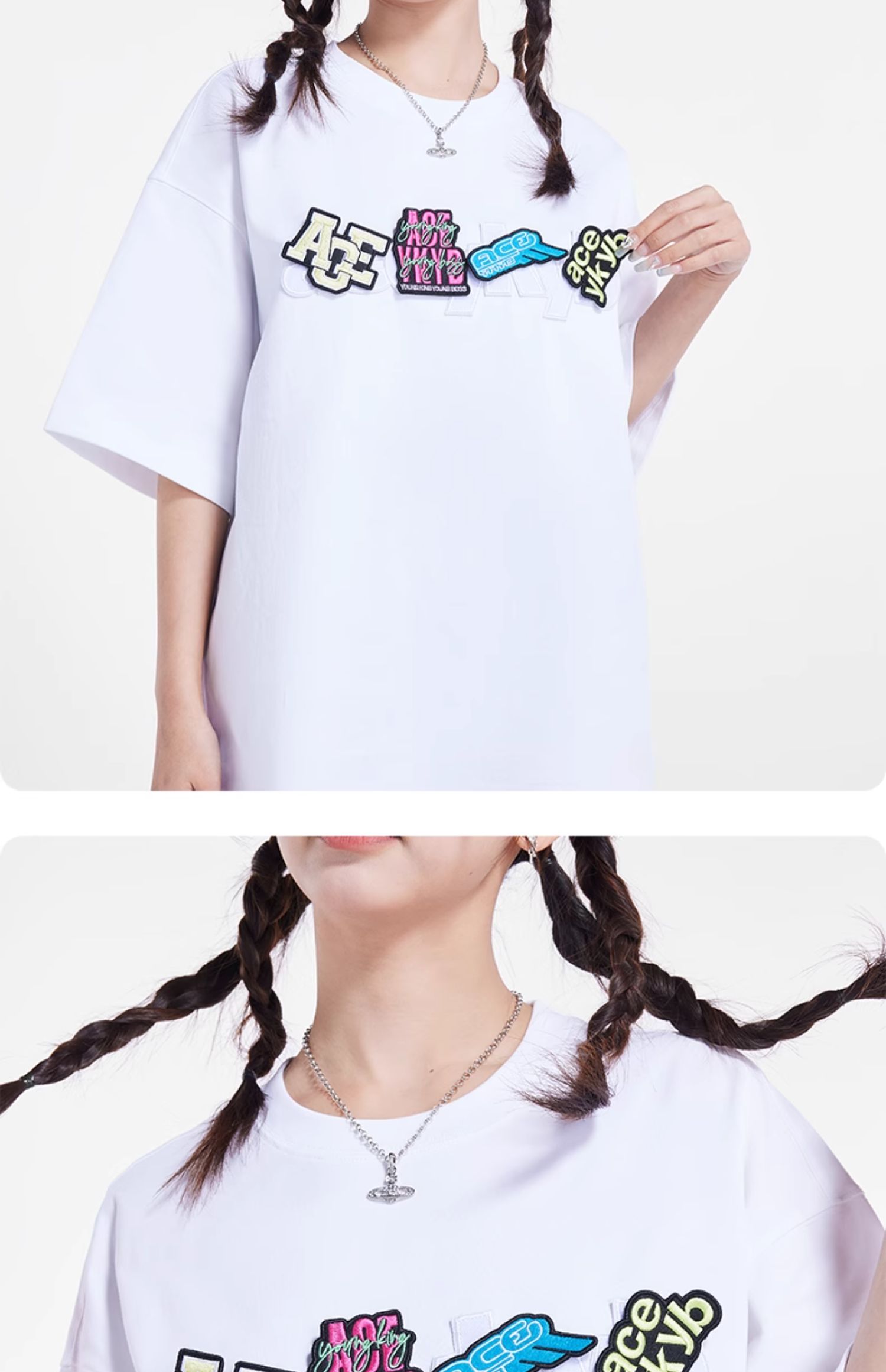 YKYB黄子韬趣味魔术贴T恤潮流中性2025夏季新款字母组合短袖上衣