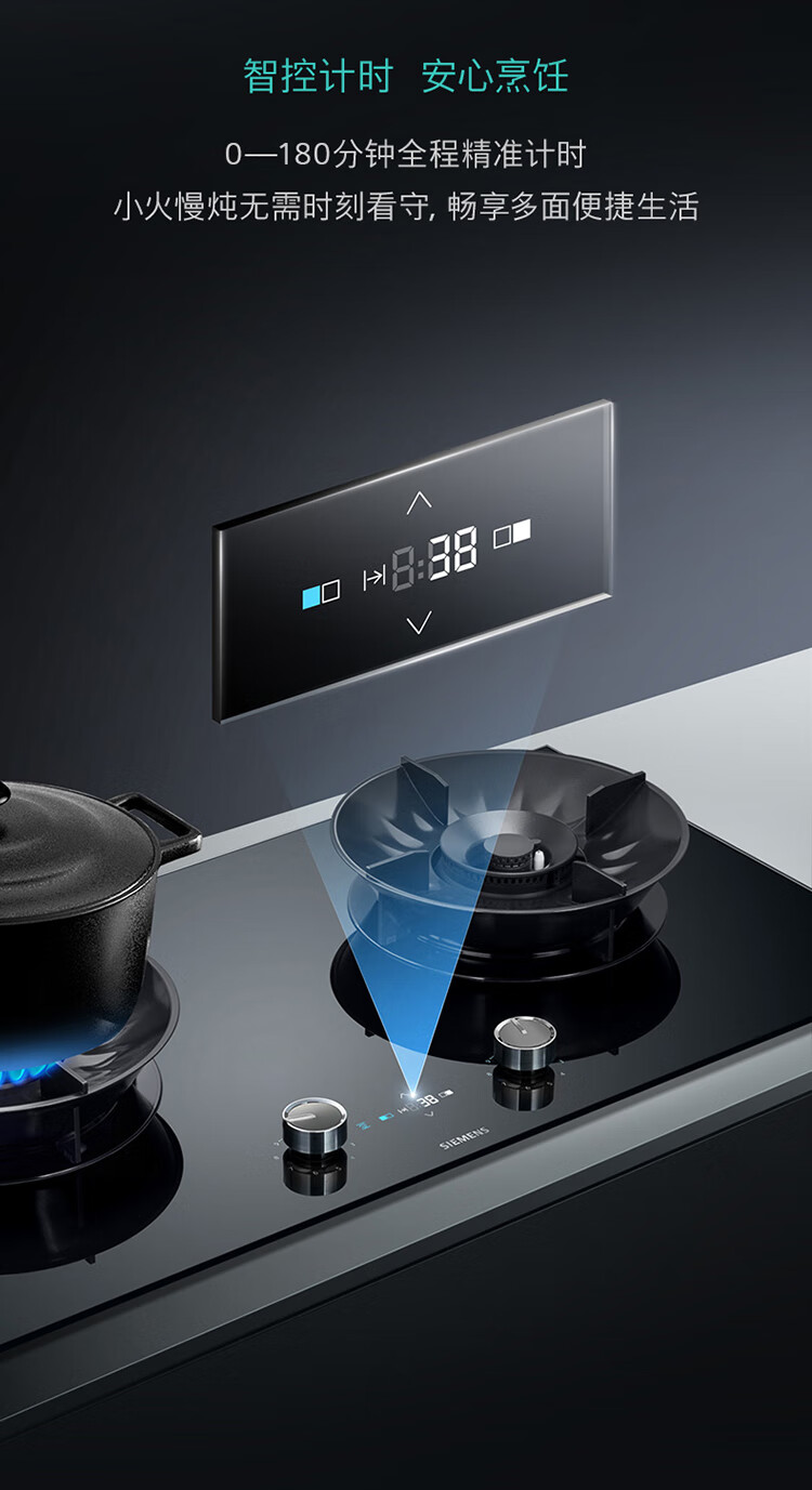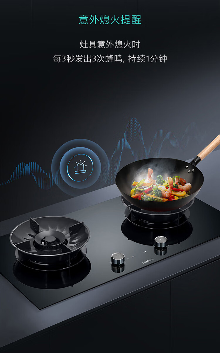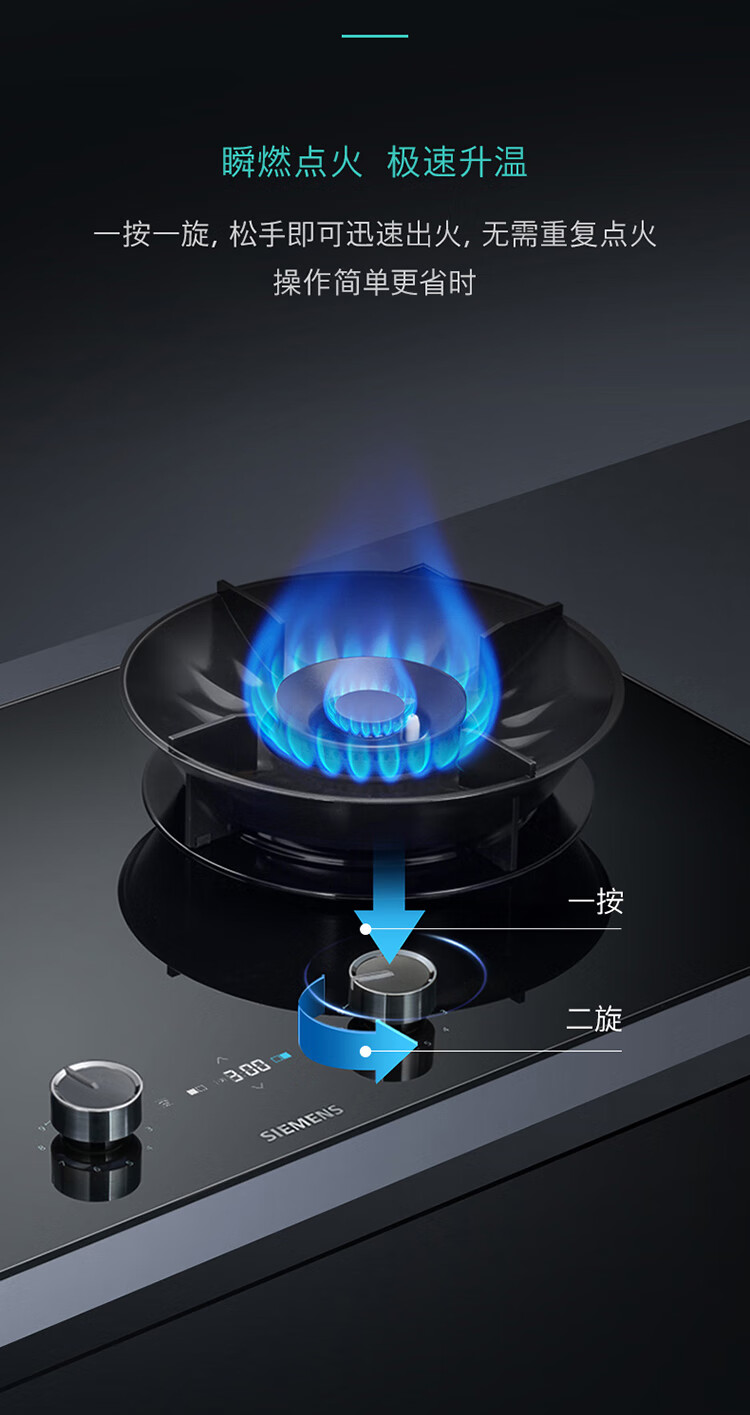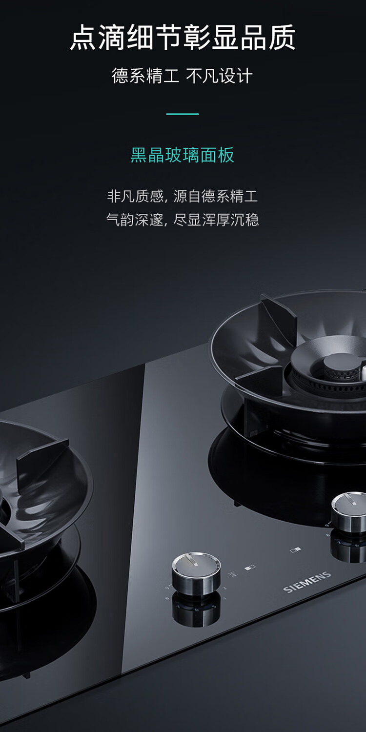 西门子(SIEMENS)5.2kW聚焰大火力嵌入式燃气灶 大师级9段自由控火 瞬燃点火 意外熄火保护 智能烟灶联动 ER92P8MBMP