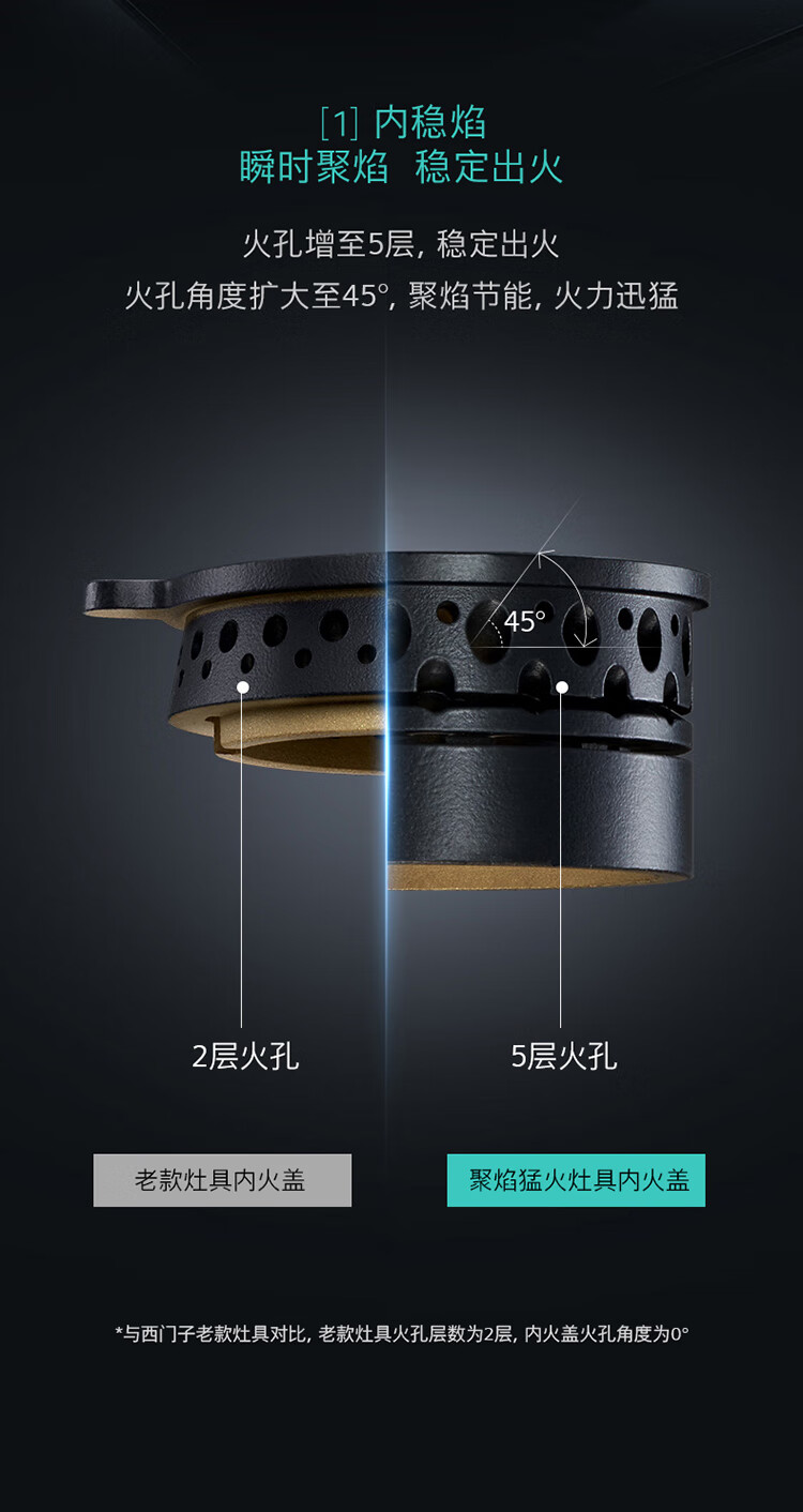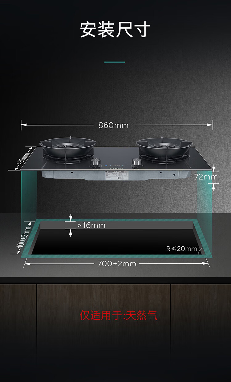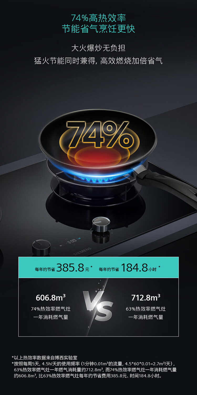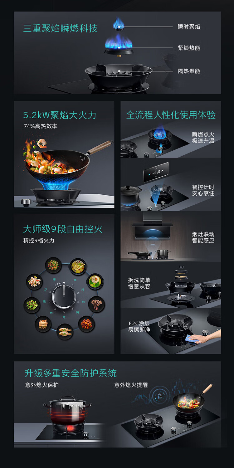 西门子(SIEMENS)5.2kW聚焰大火力嵌入式燃气灶 大师级9段自由控火 瞬燃点火 意外熄火保护 智能烟灶联动 ER92P8MBMP