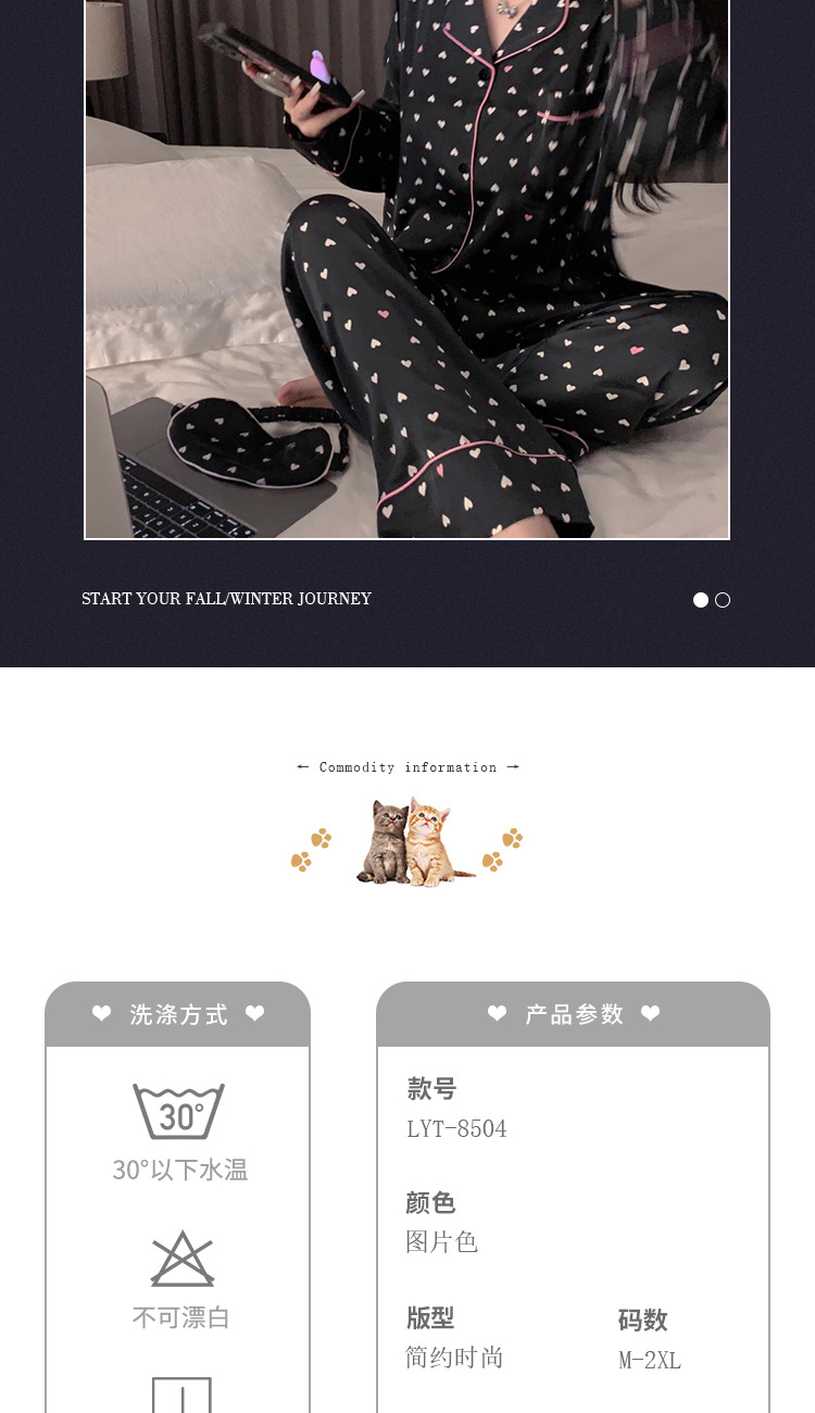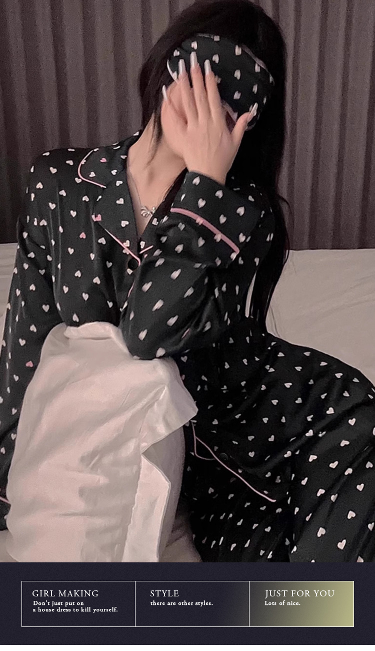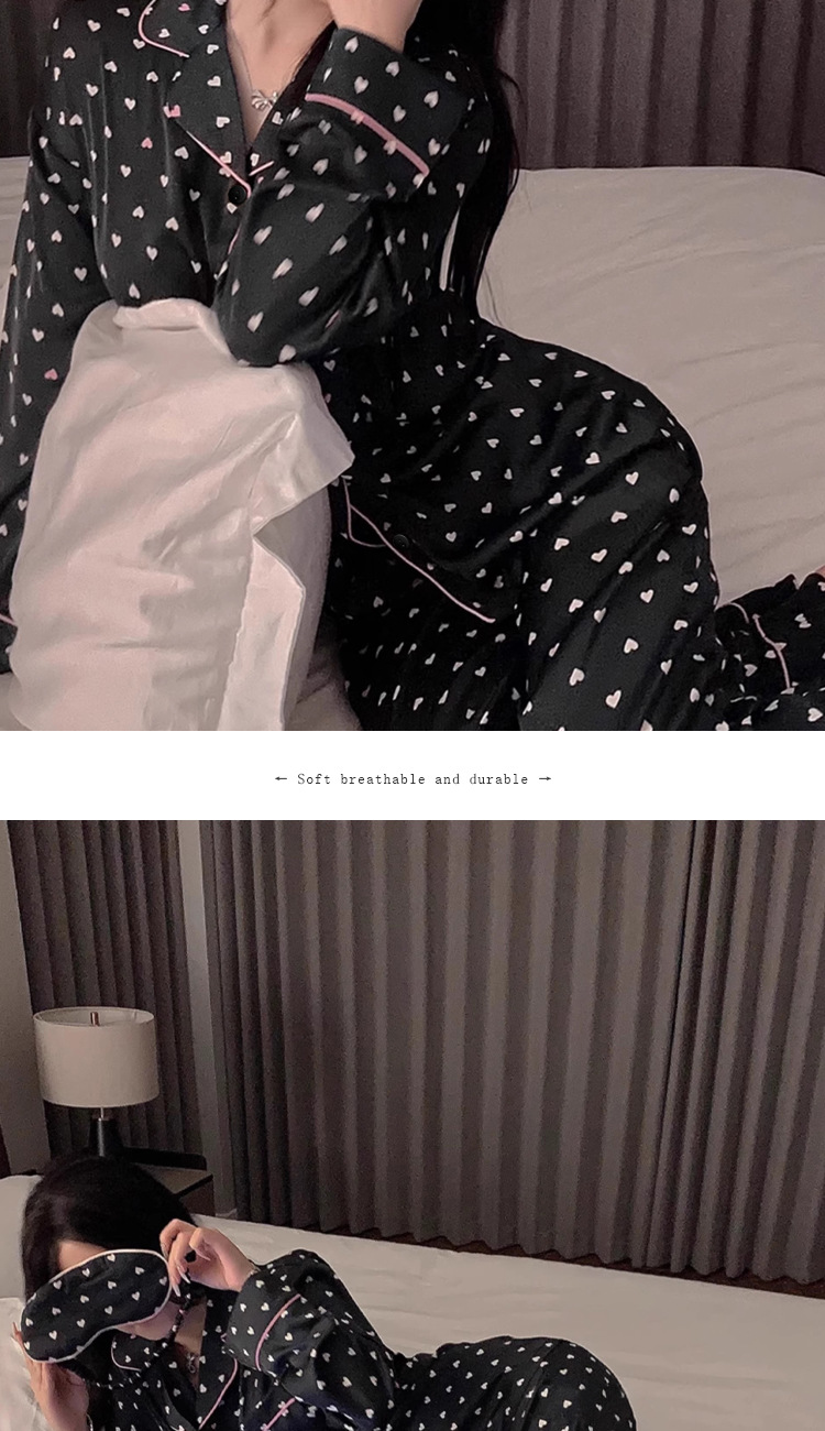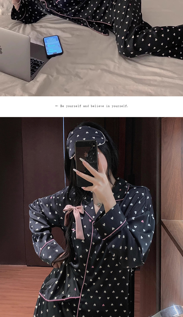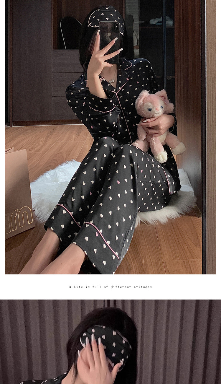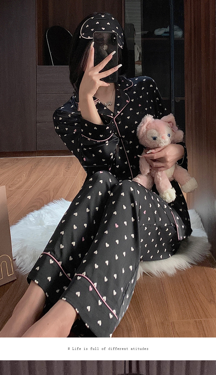 新款新品丝绸手感冰丝女士睡衣春夏新款满印爱心学生家居服两件套新款新品学生可爱新款家居服