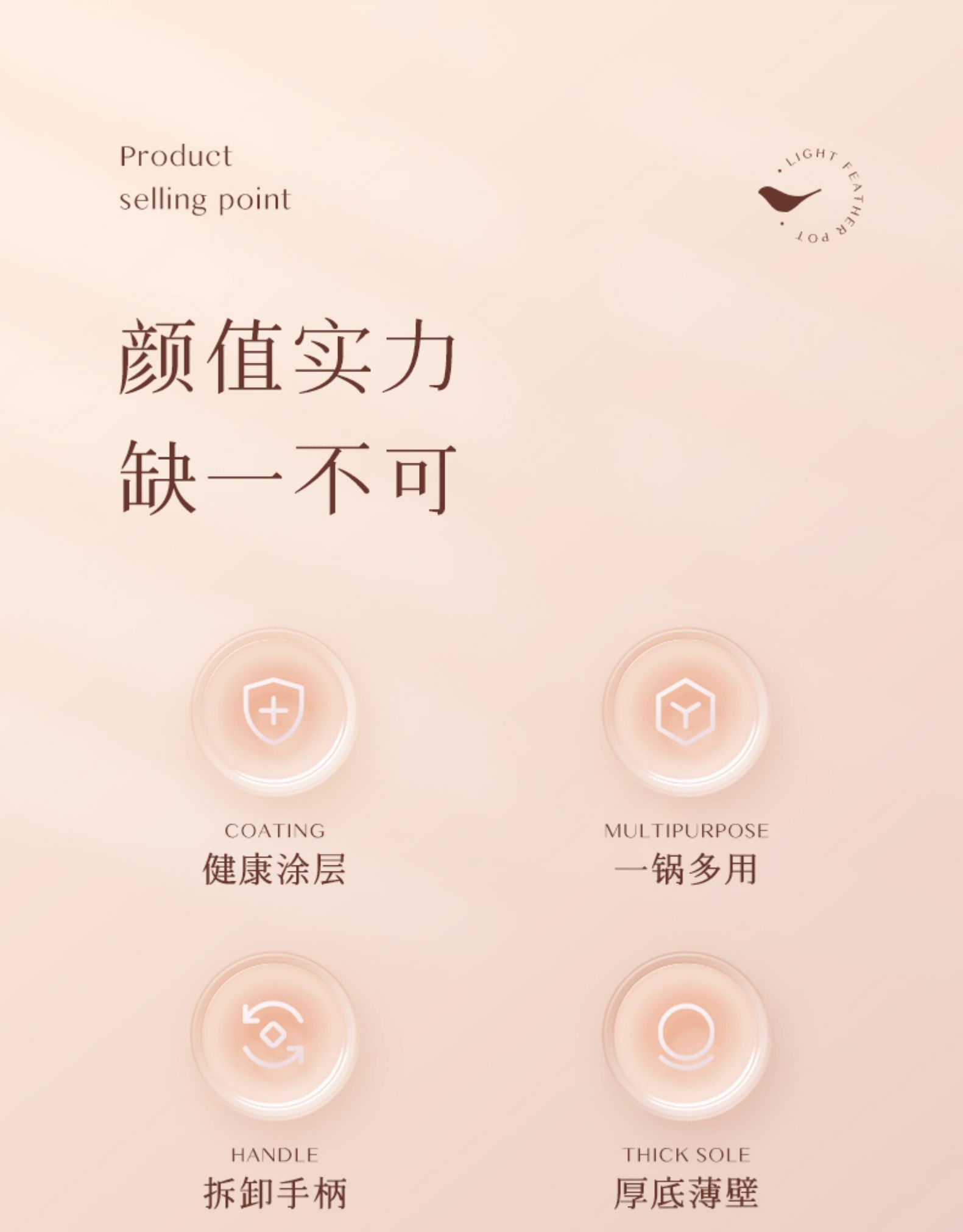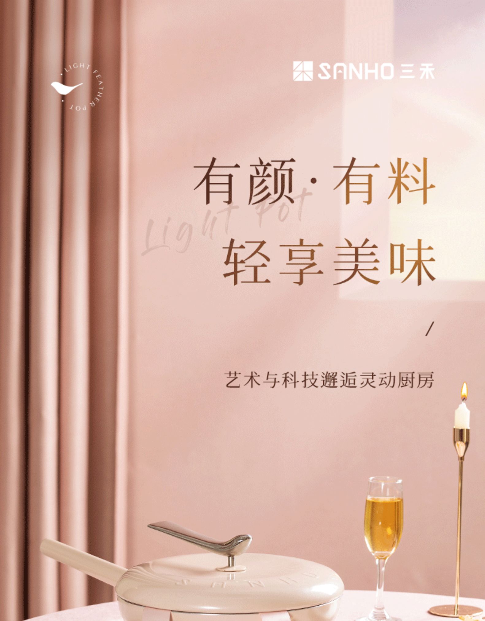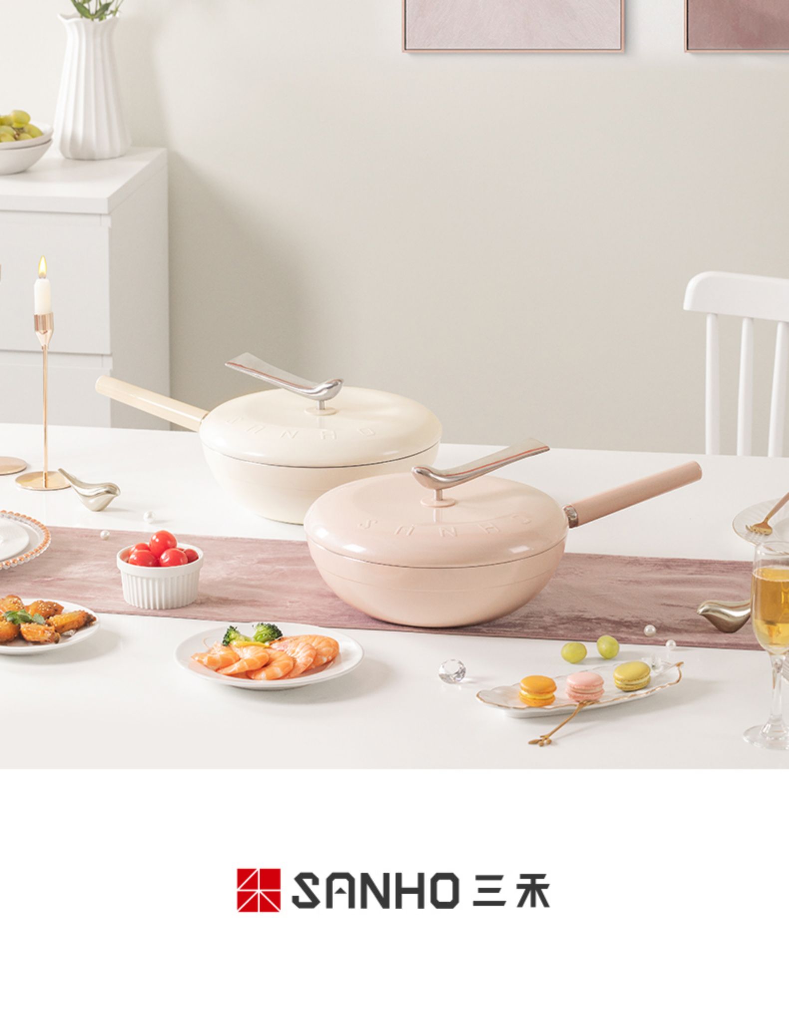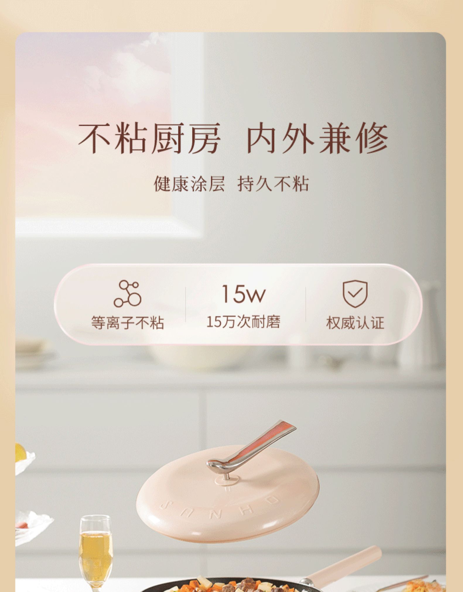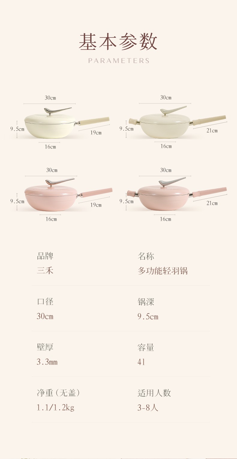 三禾轻羽不粘锅燃气电磁炉通用(白色)