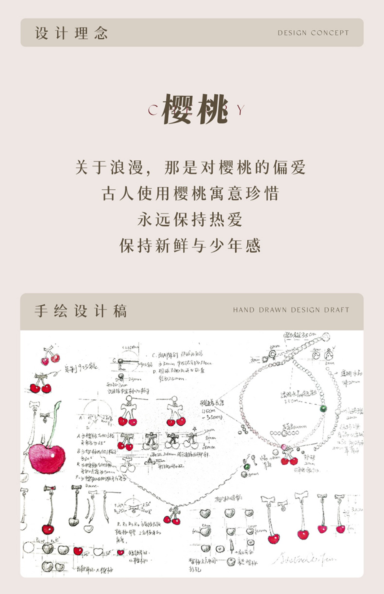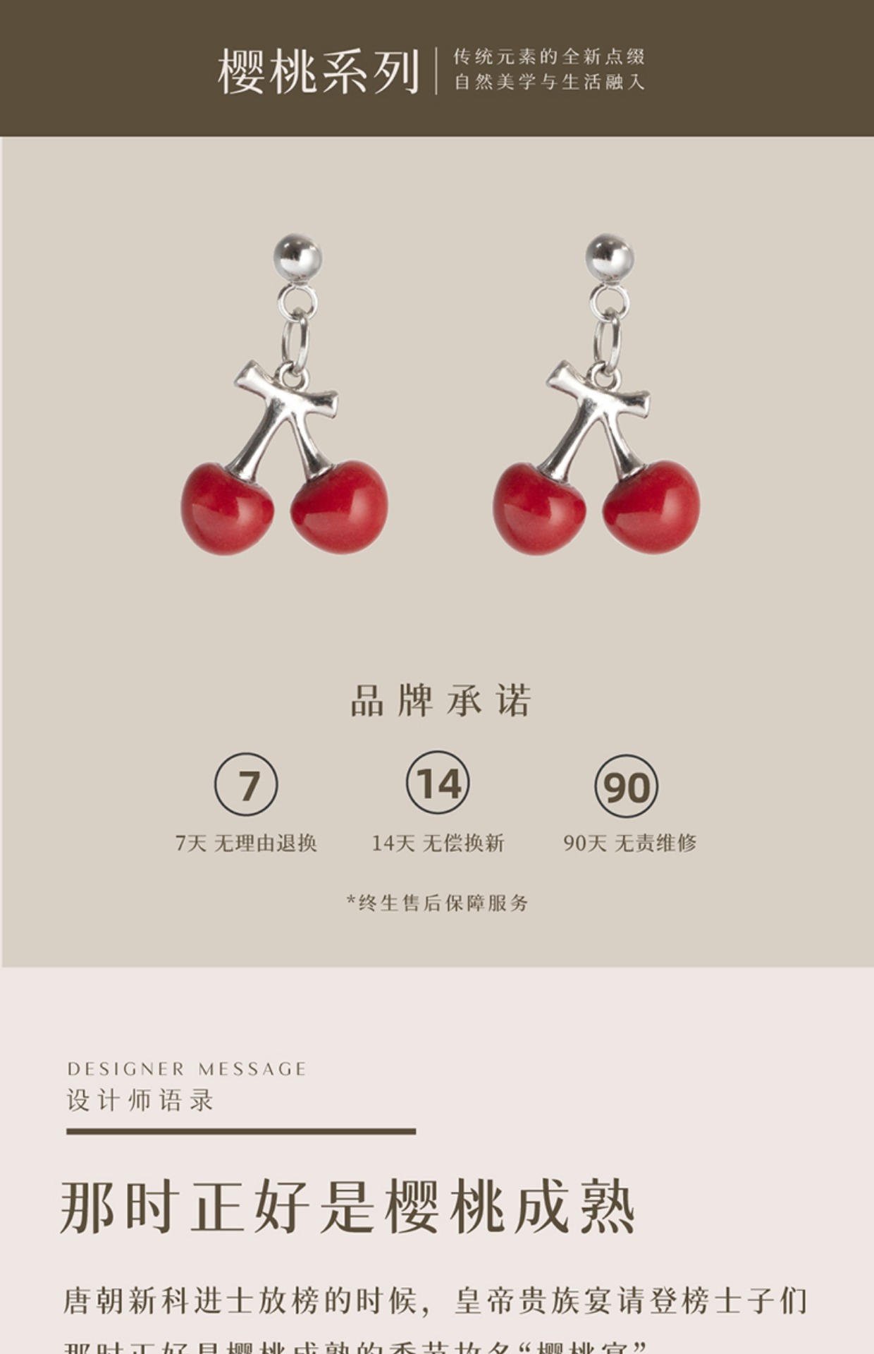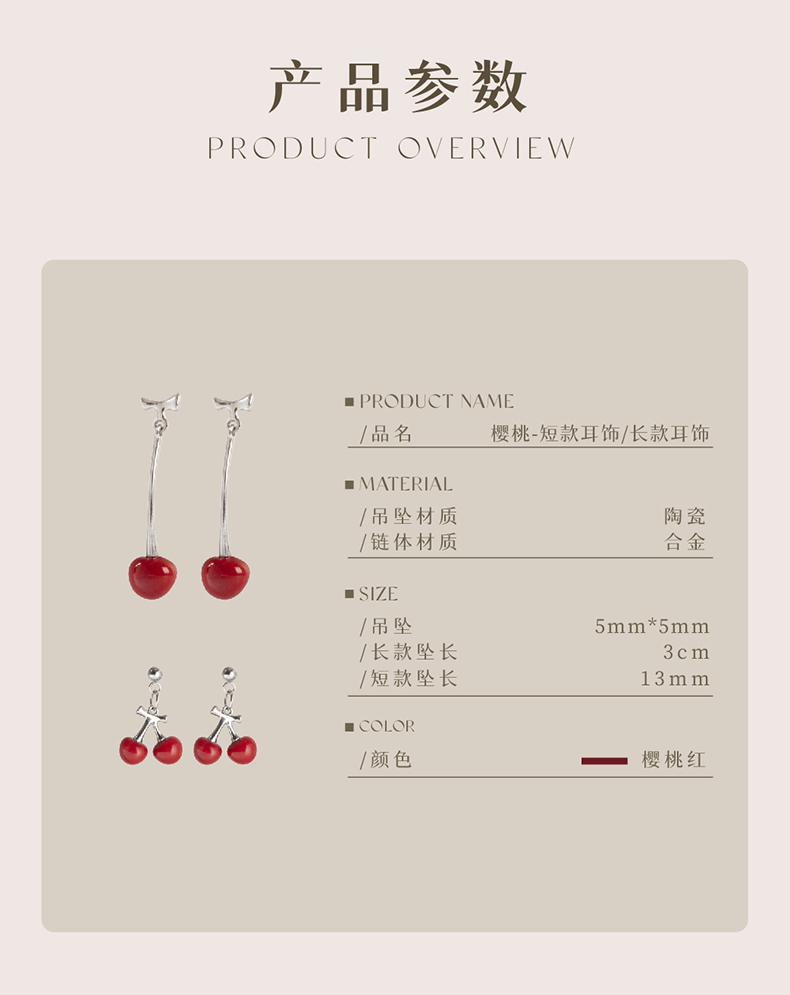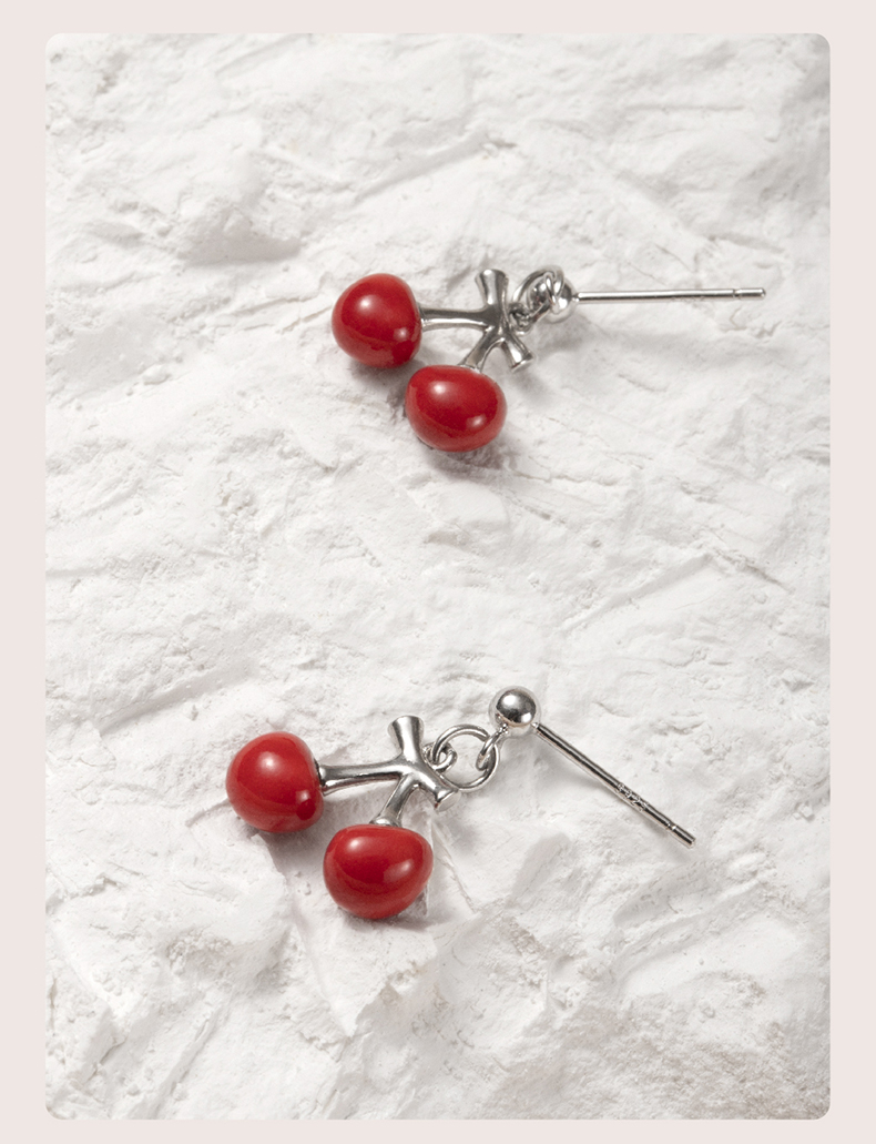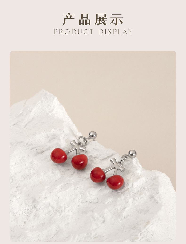 凡华造物樱桃原创925银耳钉女轻奢耳环小众设计感新款百搭耳饰樱桃短款耳钉