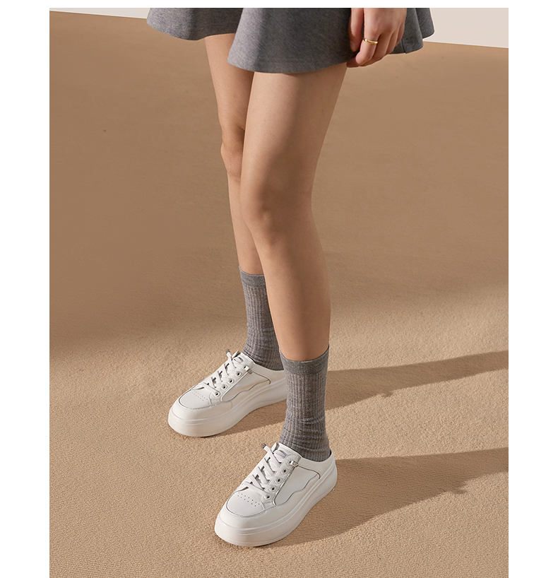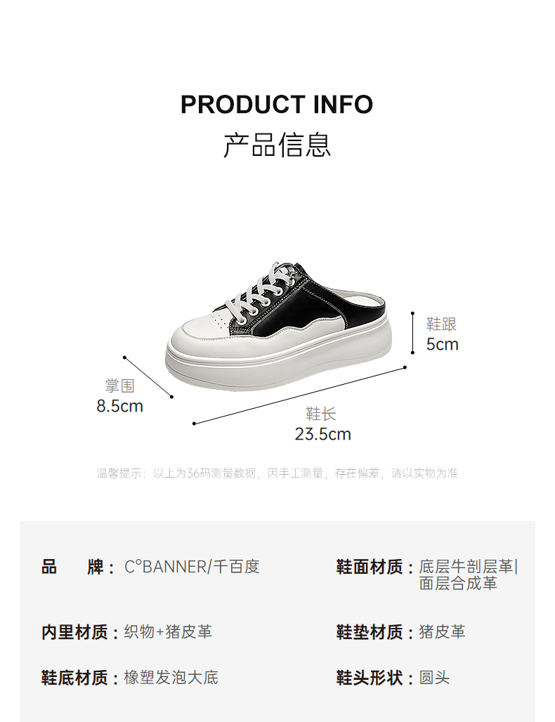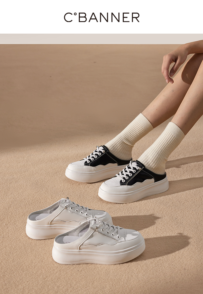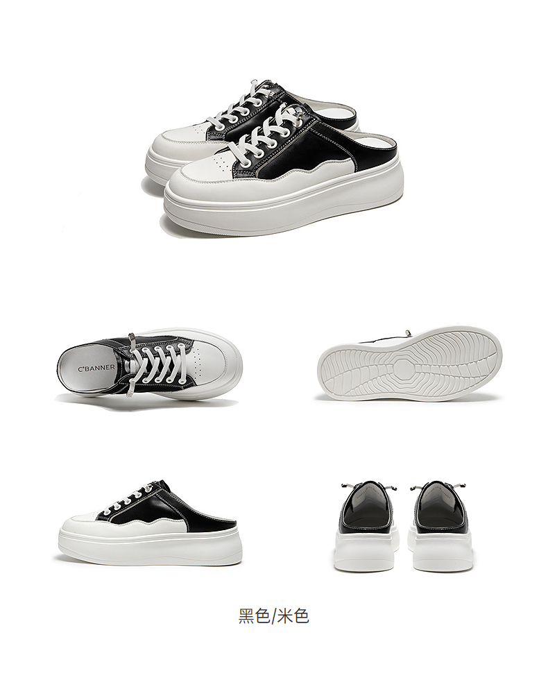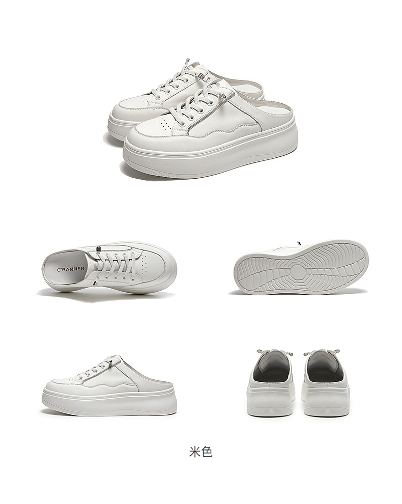 千百度厚底一脚蹬包头拖女休闲小白鞋增高外穿半拖鞋A25212176