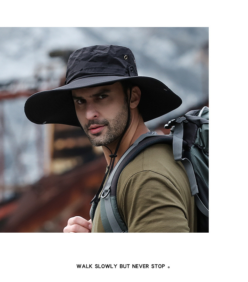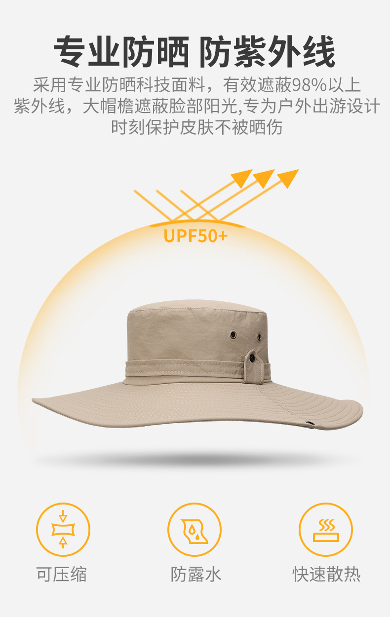 夏季渔夫帽男遮阳帽户外登山钓鱼帽防紫外线大檐防水防晒太阳帽子