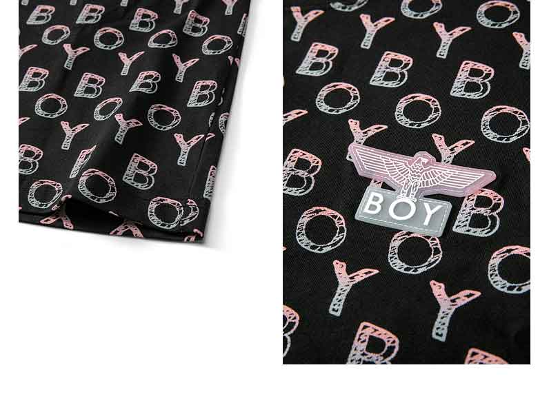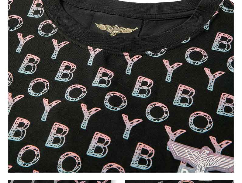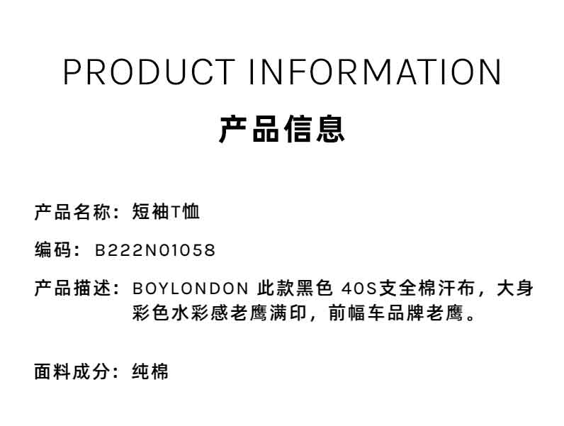 BOYLONDON短袖男女同款22夏季新品水彩感老鹰满印黑色T恤B222N01058