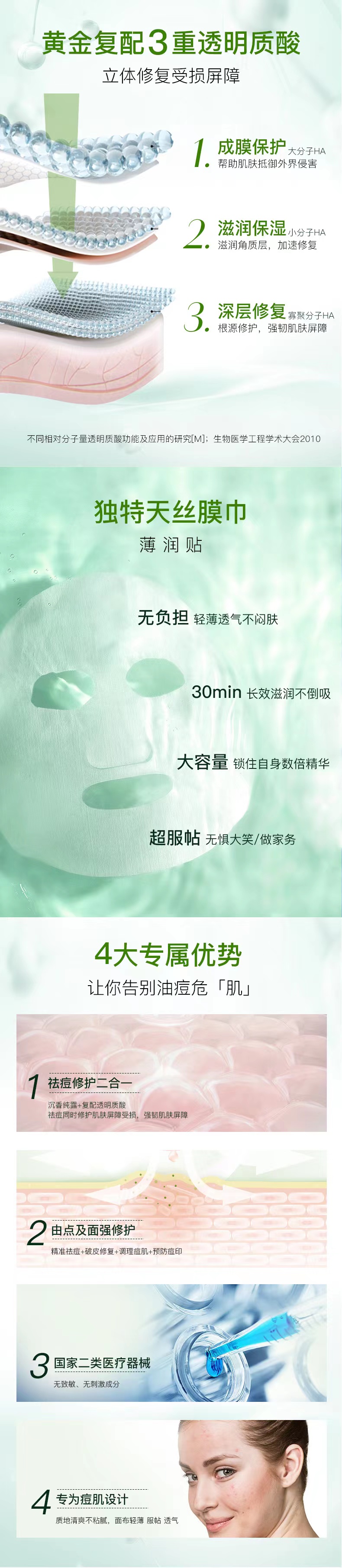敷尔佳白膜5片 (透明质酸钠修复贴) +祛痘精华组合