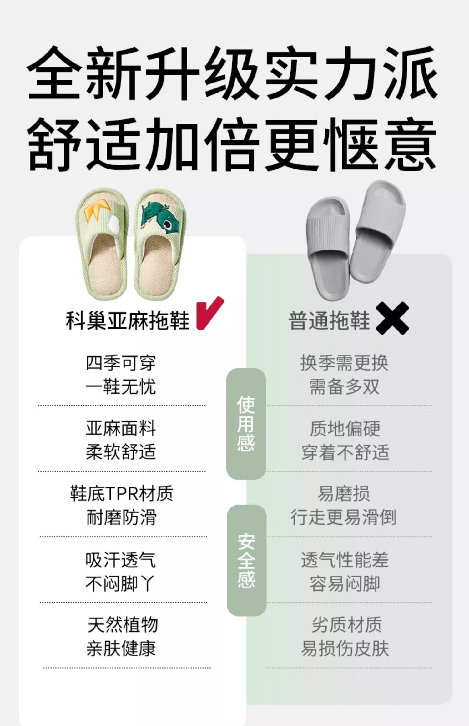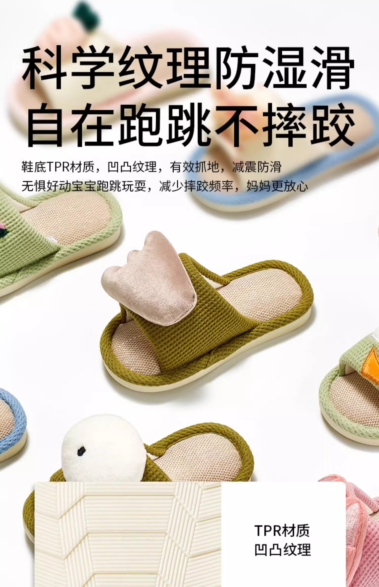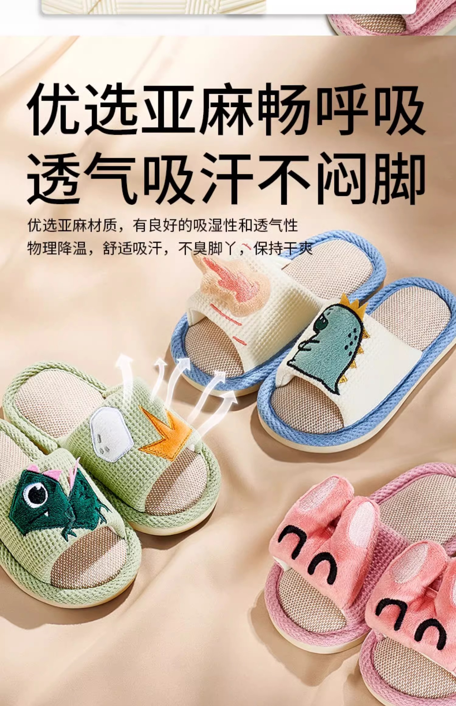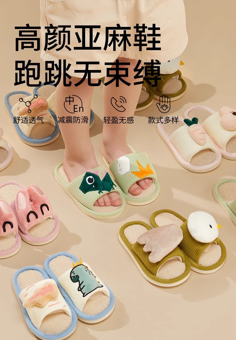 科巢儿童亚麻拖鞋夏季春秋室内防滑防臭宝宝幼儿园男童女童四季居家