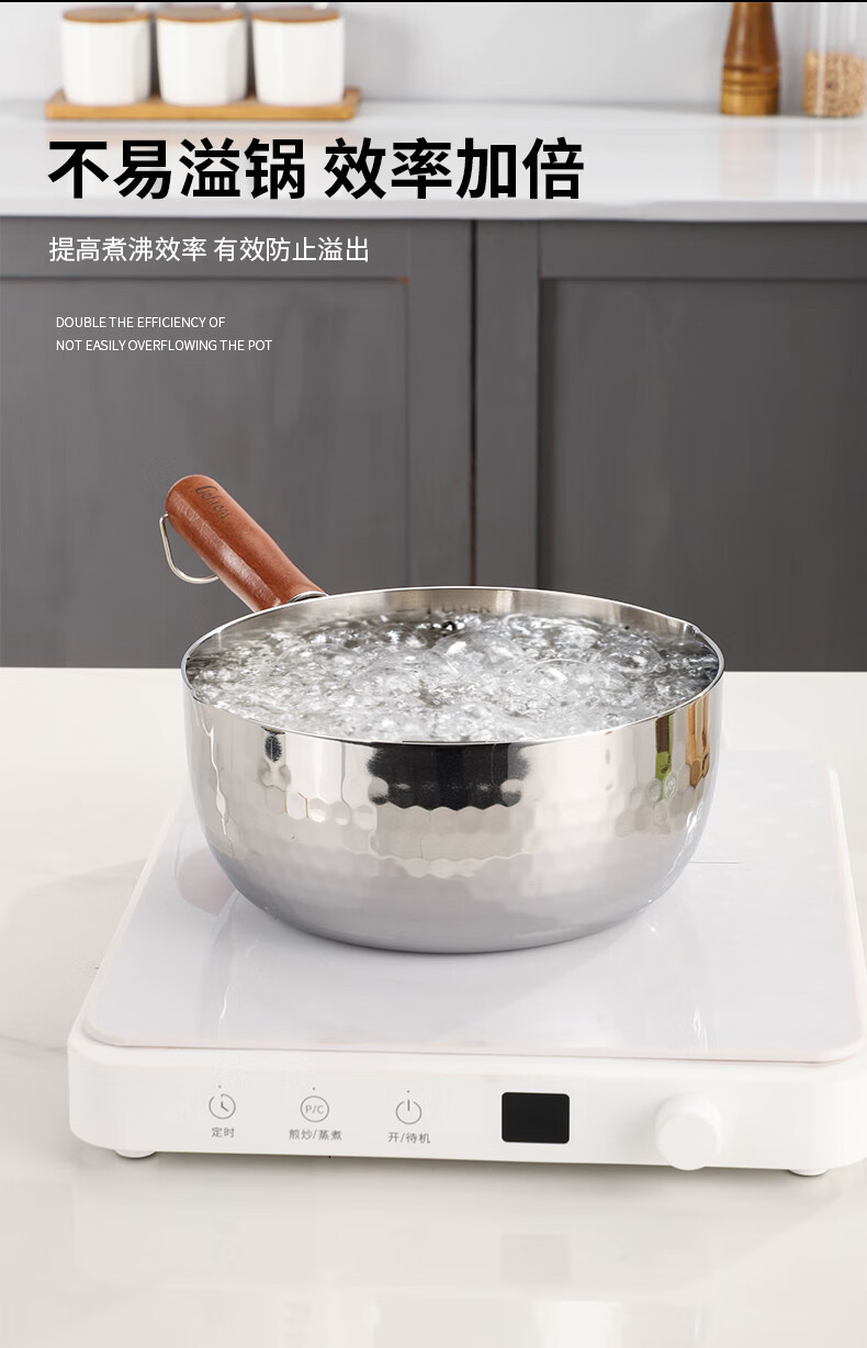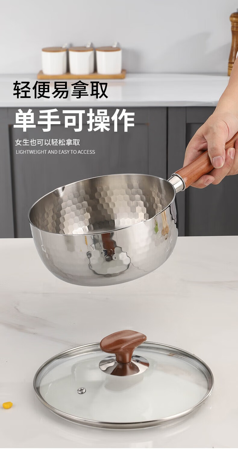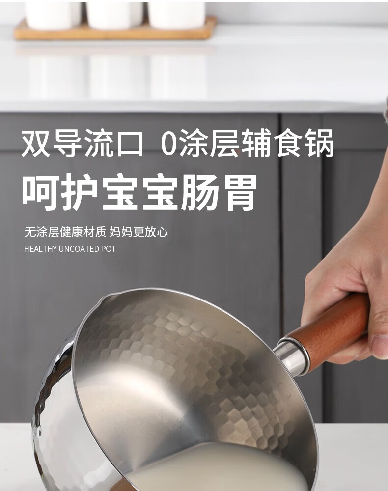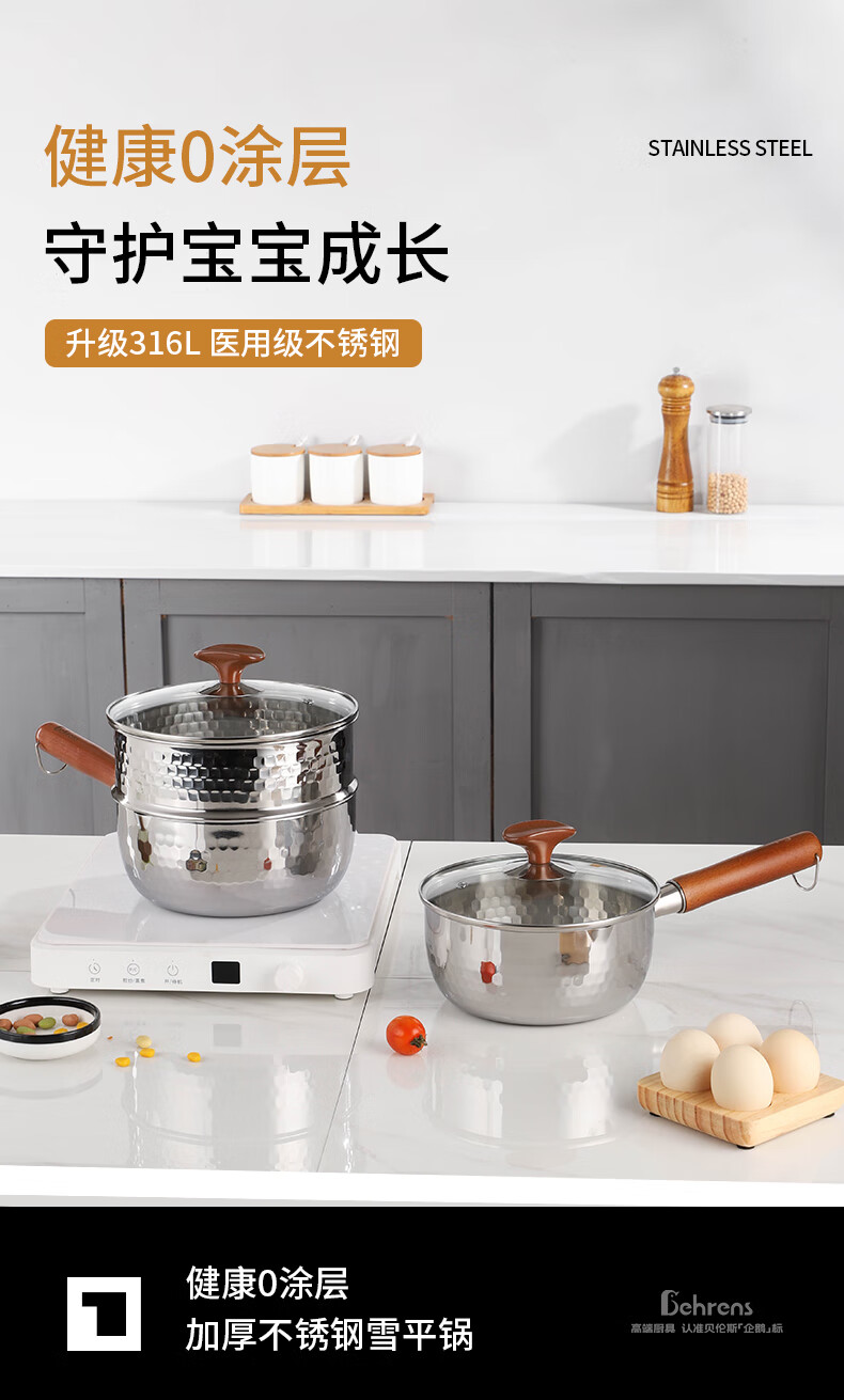贝伦斯316L不锈钢奶锅婴儿辅食锅无涂层小锅 18cm单层