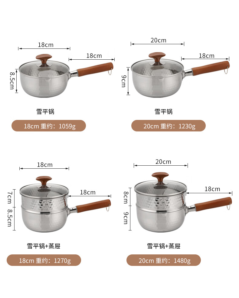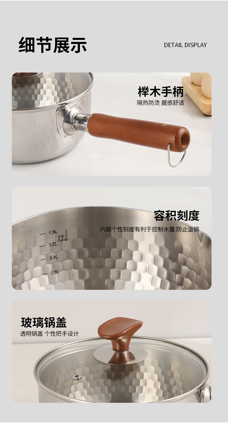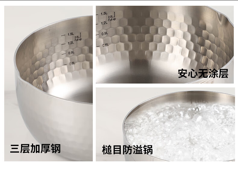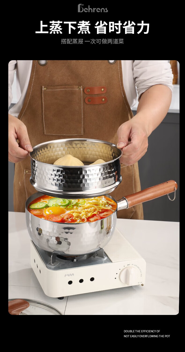 贝伦斯316L不锈钢奶锅婴儿辅食锅无涂层小锅 18cm单层