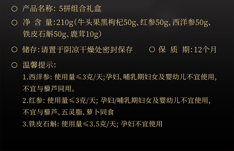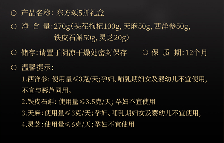 严选 | 杞里香东方颂五拼礼盒 太平有象 西洋参铁皮石斛枸杞黑灵芝天麻片五拼礼盒