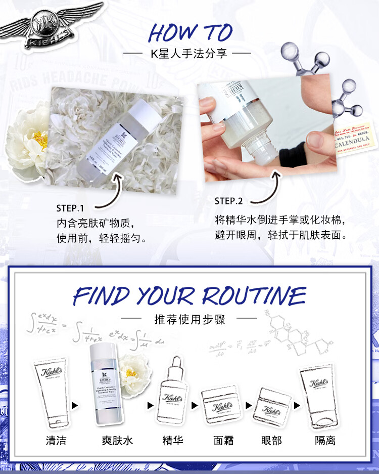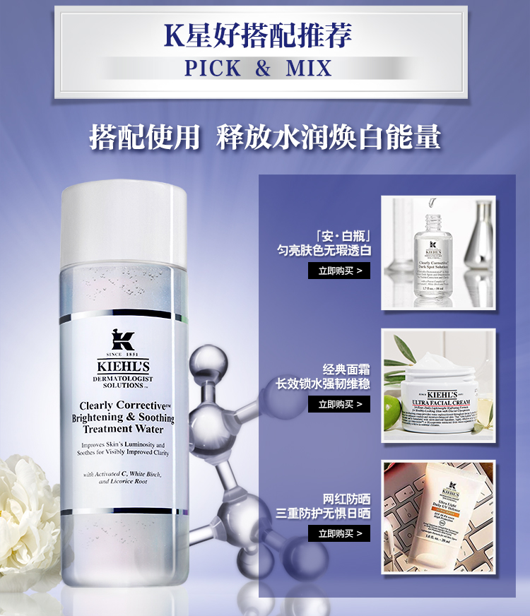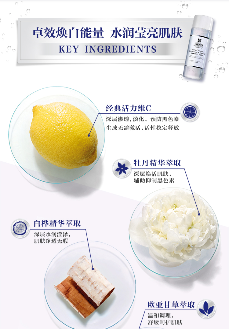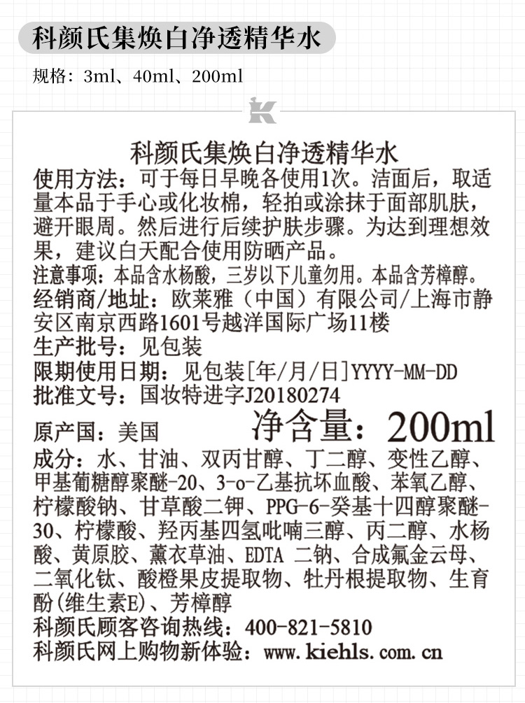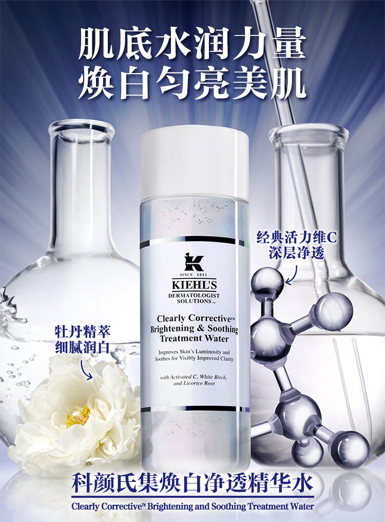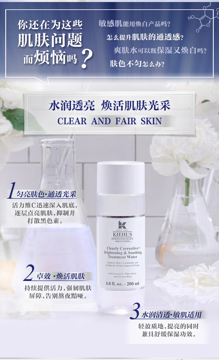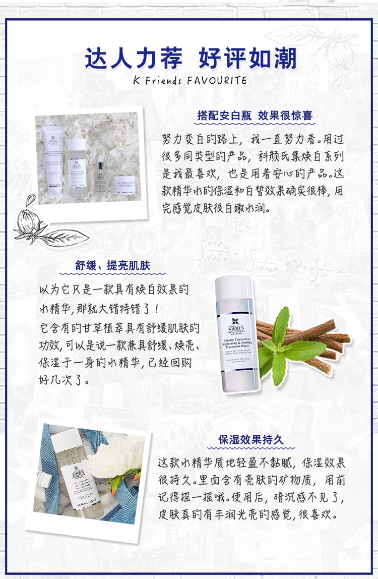 科颜氏(Kiehl's)集焕白净透精华水200ML爽肤水舒缓保湿提亮肤色护肤品送女友 心选到家