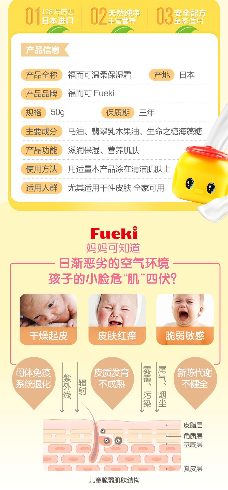 【保税仓】FUEKI/福而可小黄鸭儿童保温面霜50g/罐