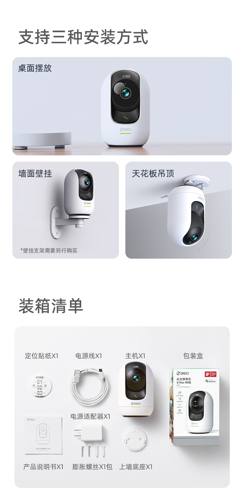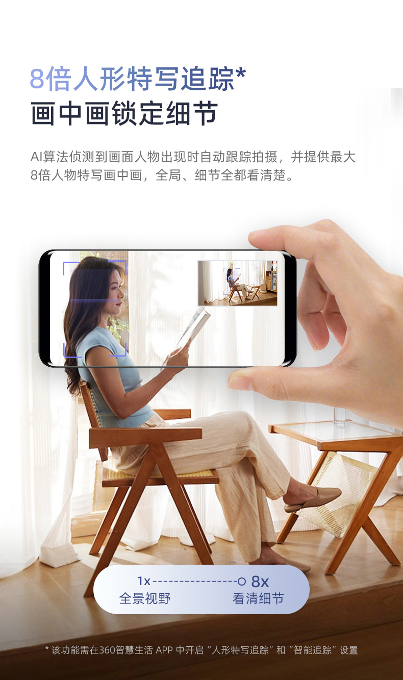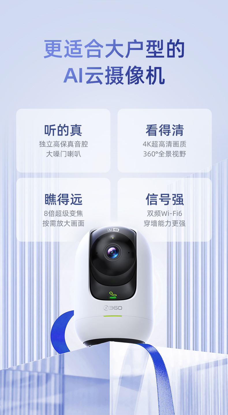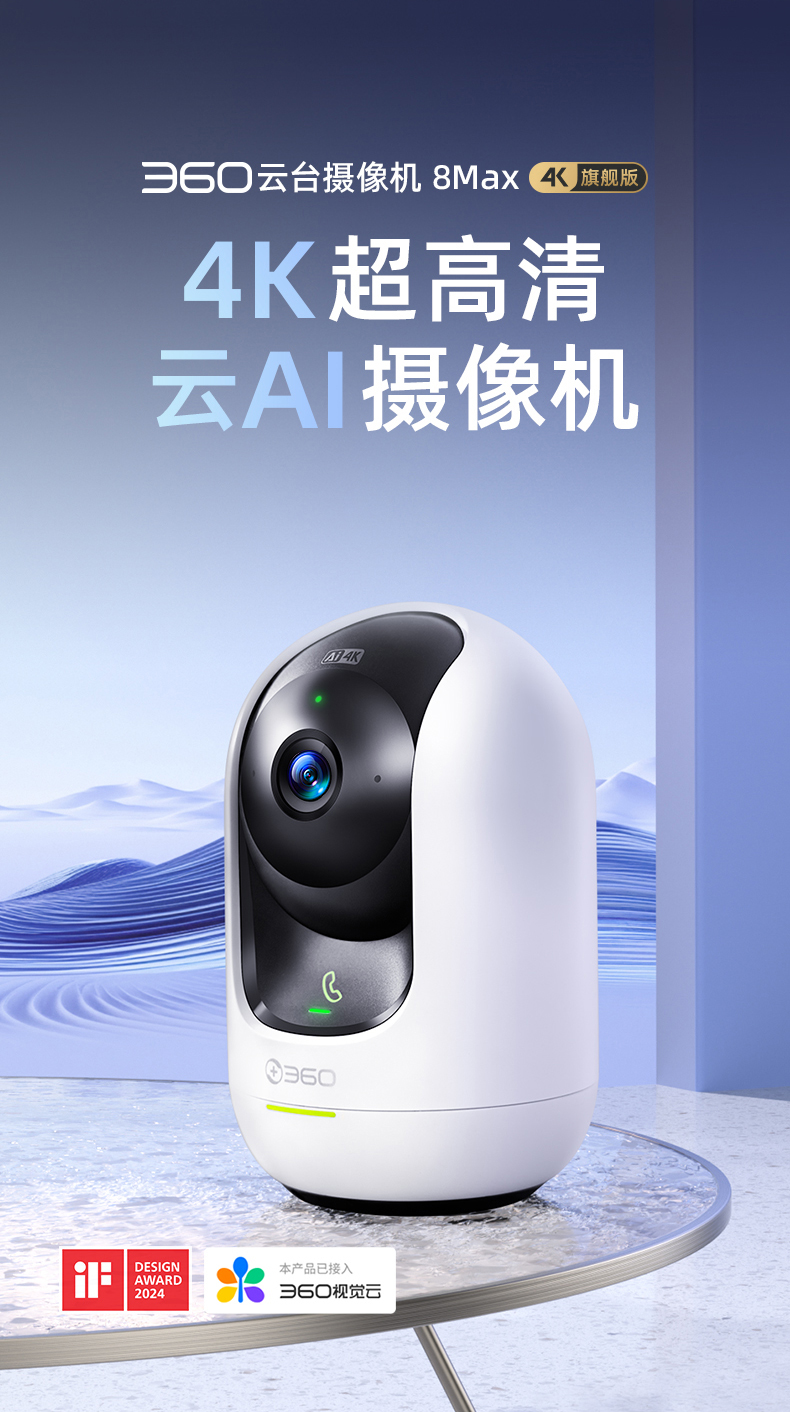 【优享】360摄像头8Max 4K 室内监控 AI 360度全景摄像头 一键呼叫 超微光全彩 镜头遮蔽