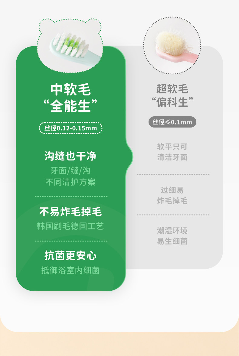绿鼻子儿童牙刷软毛0到3岁幼儿3到6岁小孩专用4岁宝宝2岁以上小头
