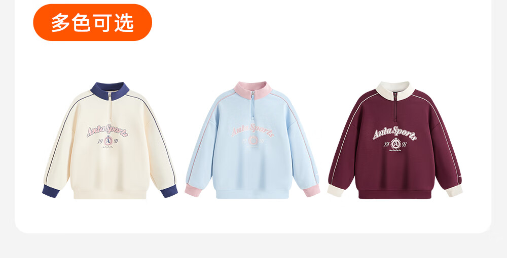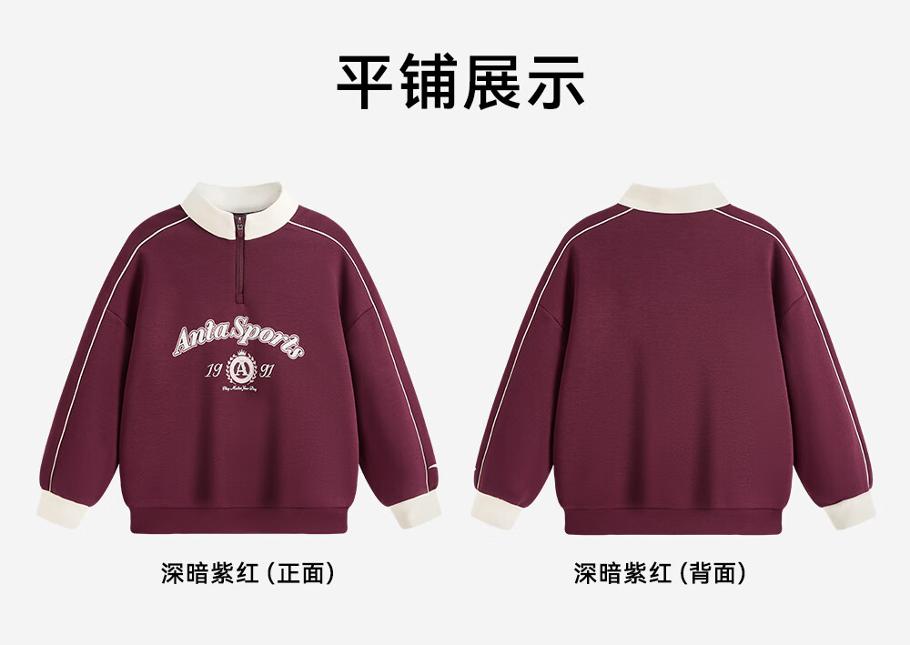 超级安踏加绒儿童卫衣女童秋冬保暖舒适姜阳科技百搭套头衫大童362547731U