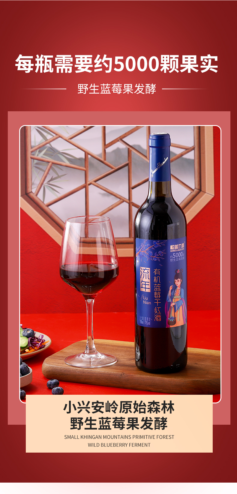 流年有机野生蓝莓干红酒750ml*2双支礼盒